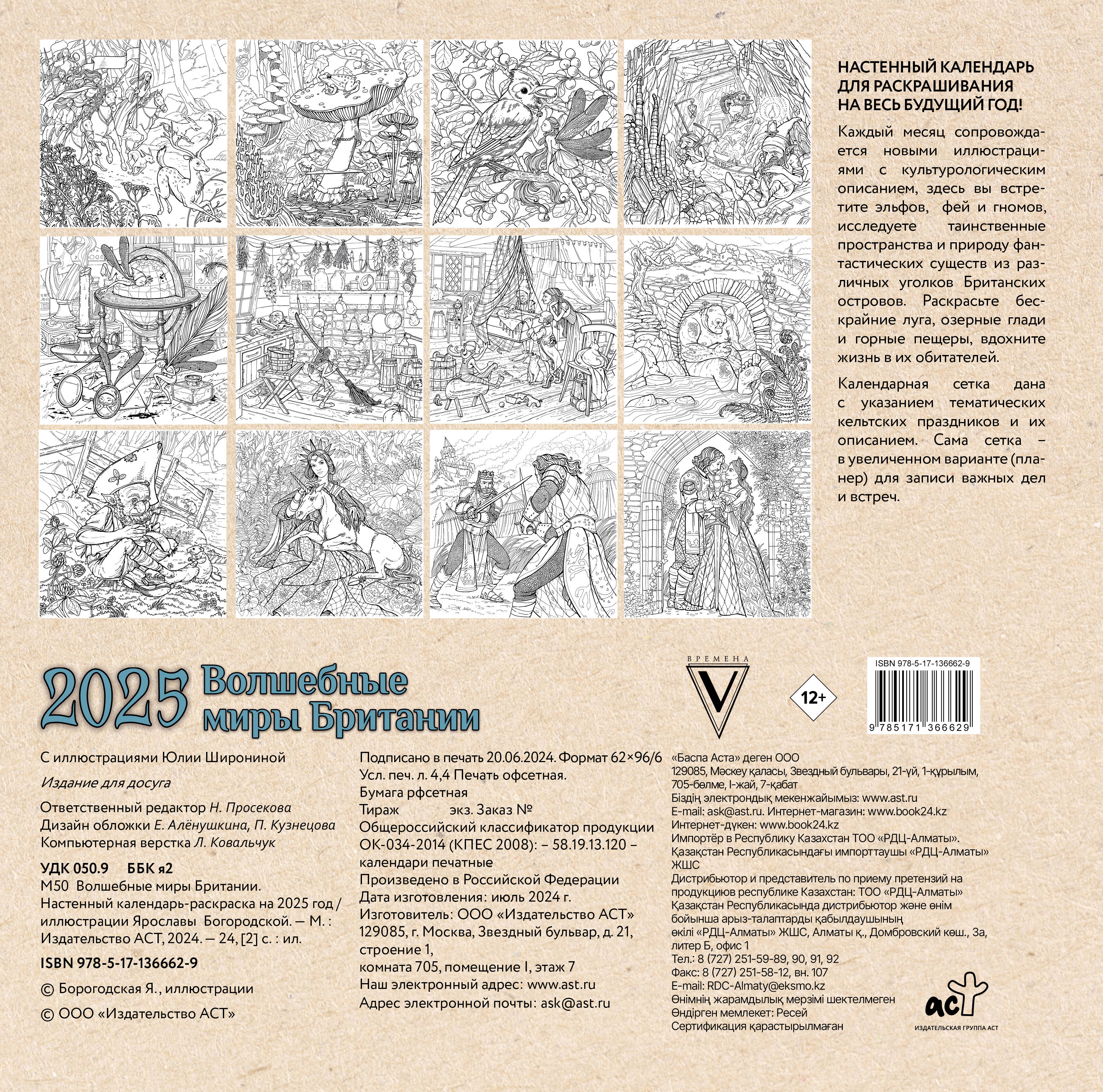 Аннотация: Волшебные миры Британии. Настенный календарь-раскраска на 2025 год