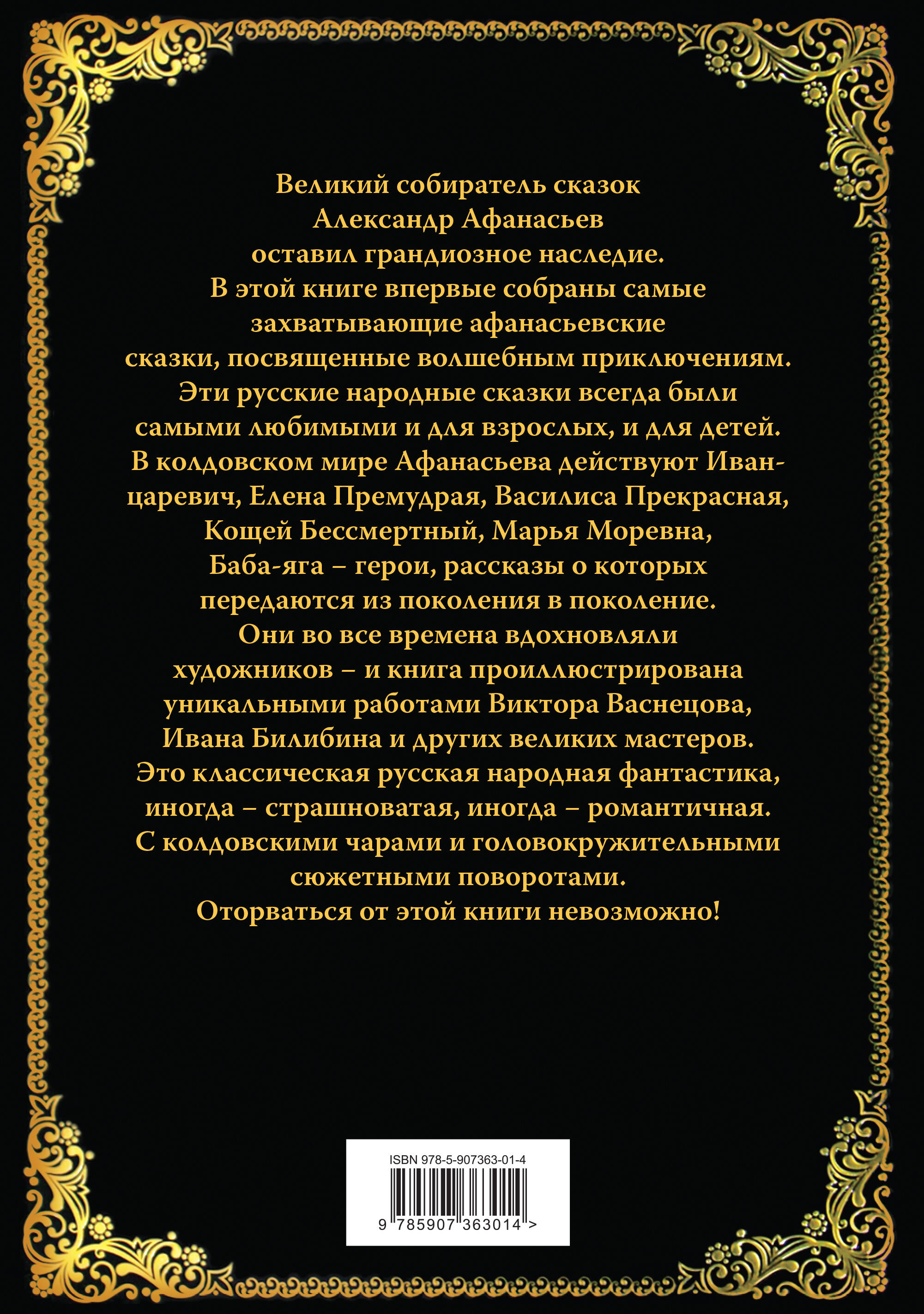 Великий собиратель русских народных сказок Александр Афанасьев оставил грандиозное наследие. В этом сборнике представлены все самые известные афанасьевские сказки, посвященные волшебным приключениям. В зачарованном царстве живут Иван Царевич и Елена Премудрая, Василиса Прекрасная и Кощей Бессмертный, Марья Моревна и Баба Яга - любимые герои многих поколений. Этот мир - неисчерпаемый источник вдохновения для творчества. Это классика русского фольклора: страшноватая, романтичная, бесконечно разнообразная. Здесь добро всегда побеждает зло, а самые головокружительные сюжеты обязательно завершает пир горой. Подарочное издание проиллюстрировано шедеврами Виктора Васнецова, Ивана Билибина и других знаменитых мастеров книжной графики. В этой книге живет душа России, ее обереги, символы и вековая мудрость.| Издательство | Агентство Алгоритм ООО |