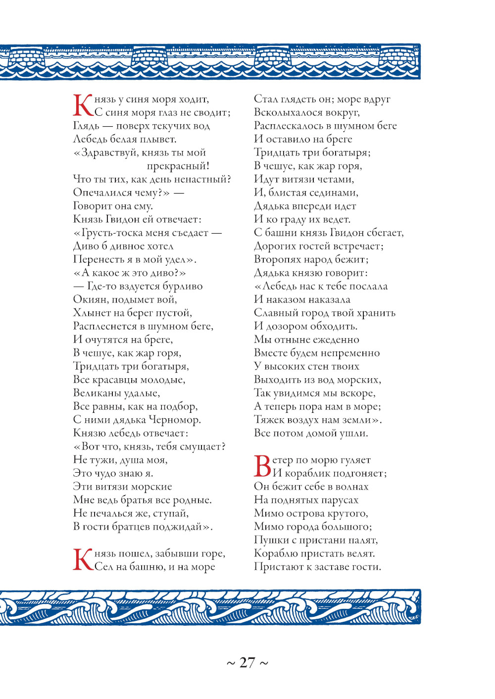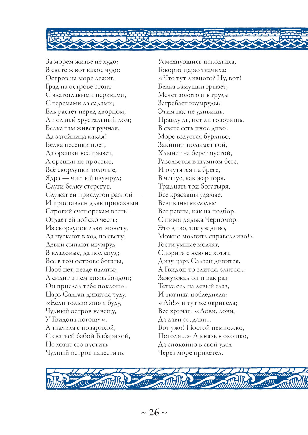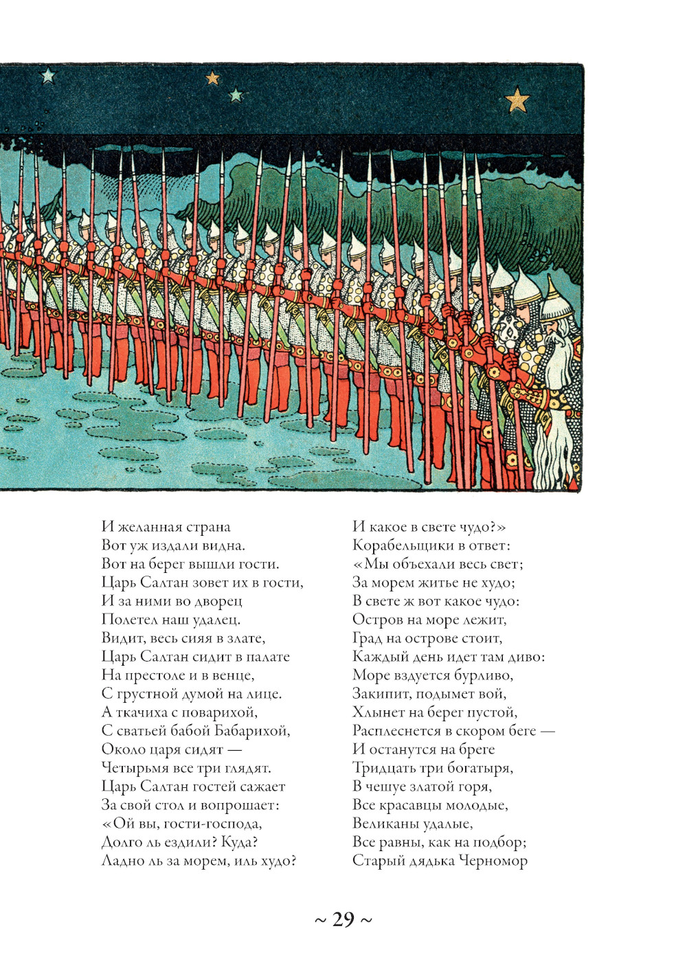 Все сказки в этом сборнике проиллюстрированы признанным виртуозом орнамента и рисунка, прекрасным мастером цвета, великолепным иллюстратором и оформителем книг Иваном Яковлевичем Билибиным. Именно они придают книге уникальный колорит, ведь не будет преувеличением сказать, что удивительный мир русских сказок мы во многом представляем себе именно благодаря удивительным рисункам этого талантливого художника. Будущий классик книжной иллюстрации родился в 1876 году в семье военно-морского врача. Тяга к рисованию проявилась у него еще в детстве, однако отец Билибина был против обучения сына в Академии Художеств. В результате юноша закончил юридический факультет Санкт-Петербургского университета, но увлечение рисованием постоянно уводило Билибина в сторону от юриспруденции. Еще в студенческие годы он начал посещать художественные классы, которыми руководил И. Е. Репин. В конце 1898 года Билибин два месяца проучился в мастерской Антона Ашбе в Мюнхене, а через год, находясь в Тверской губернии, он создал иллюстрации к книге «Сказка о Иван-царевиче, Жар-птице и о Сером волке». Художник был большим поклонником Виктора Васнецова и так же, как и Васнецов, черпал вдохновение в народном творчестве. Используя декоративные приемы древнерусского и народного искусства (вышивки, лубки, иконы), Иван Яковлевич сформировал свой уникальный «билибинский» стиль, который прославил художника. Рисунки Билибина легко узнают даже далекие от искусства люди. Иллюстрации к русским сказкам Билибина заметил князь Б. Б. Голицын, возглавлявший в конце XIX века так называемую «Экспедицию заготовления государственных бумаг». Под ее эгидой Голицын мечтал выпускать высококачественную печатную продукцию, которая способствовала 6ы эстетическому развитию народа. Рисунки Билибина как нельзя лучше соответствовали этой цели. Сотрудничество художника с «Экспедицией» продолжалось несколько лет. По заданию этнографического отдела Музея Александра III Билибин посетил Вологодскую, Олонецкую и Архангельскую губернии, где изучал деревянное зодчество. В начале ХХ века заставки, концовки, обложки и другие работы Билибина стали появляться в таких журналах как «Мир Искусства» и «Золотое Руно». Суровые ветры революции 1917 года заставили Билибина покинуть Россию. Он жил и успешно работал сначала в Каире, потом в Париже. Однако желание вновь оказаться на родине было так велико, что в 1936 году художник переехал в Ленинград. В этом городе он и умер зимой 1942 года от истощения, отказавшись после начала войны от предложенной ему властями эвакуации.| Издательство | СЗКЭО |