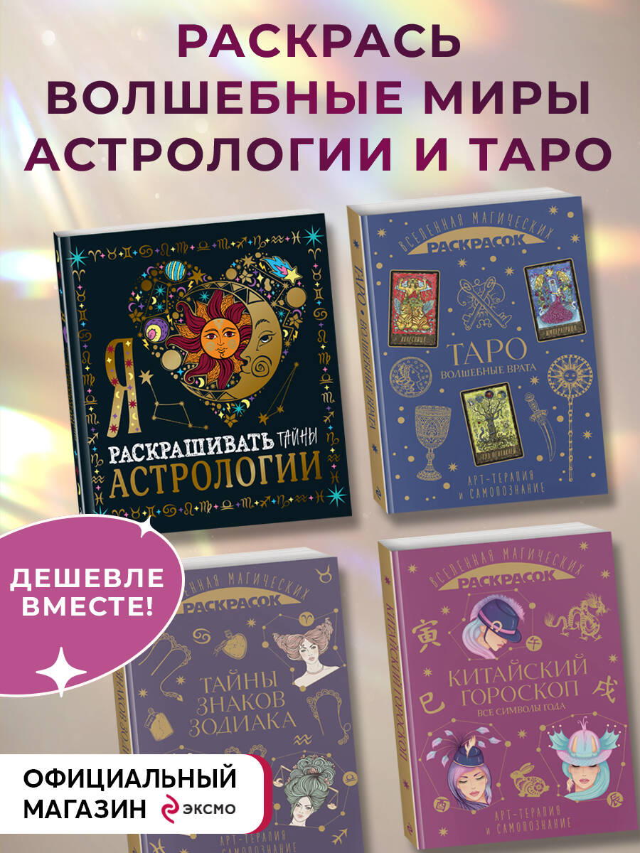 Комплект из 4-х раскрасок. Волшебный мир астрологии и таро