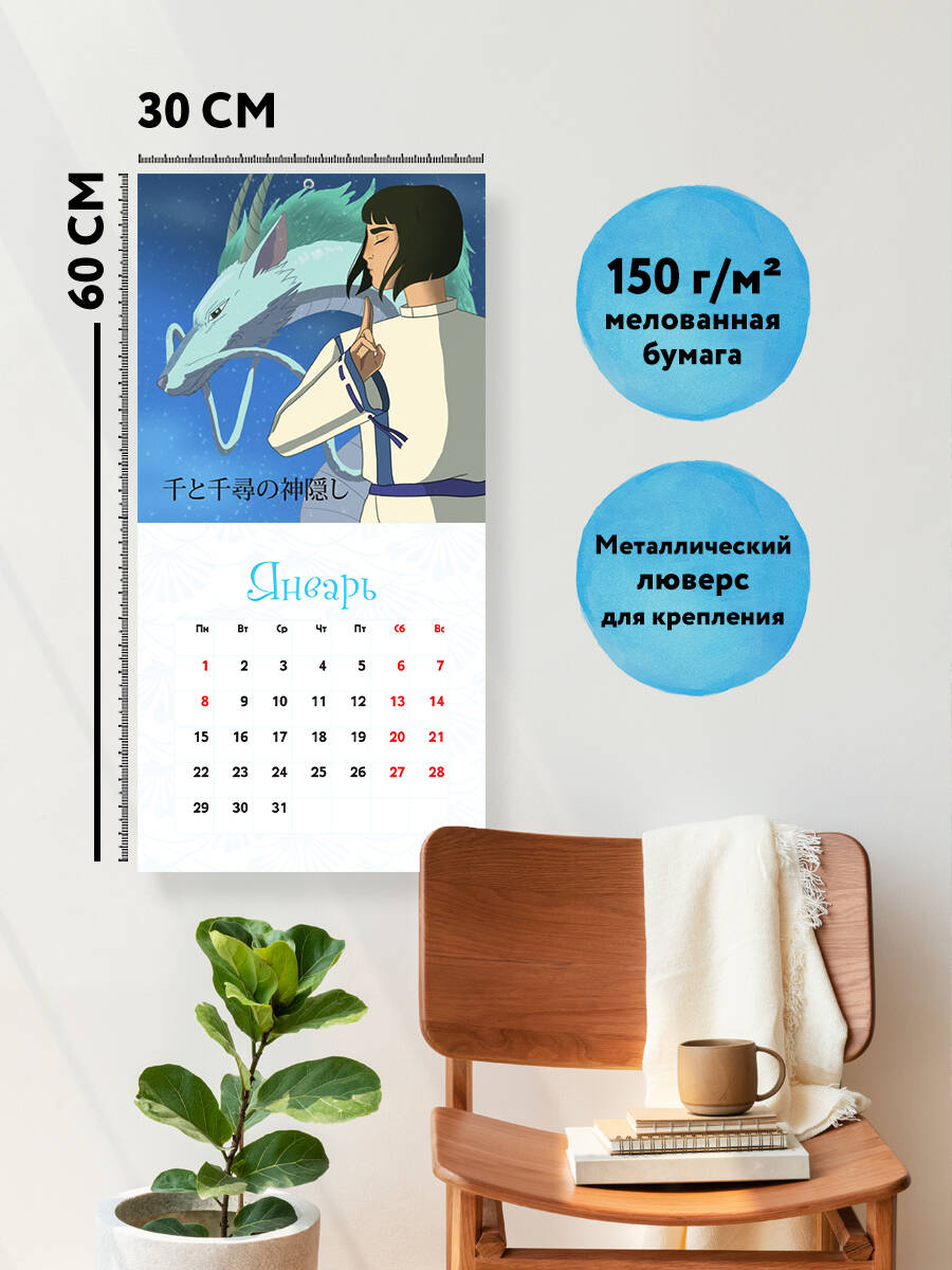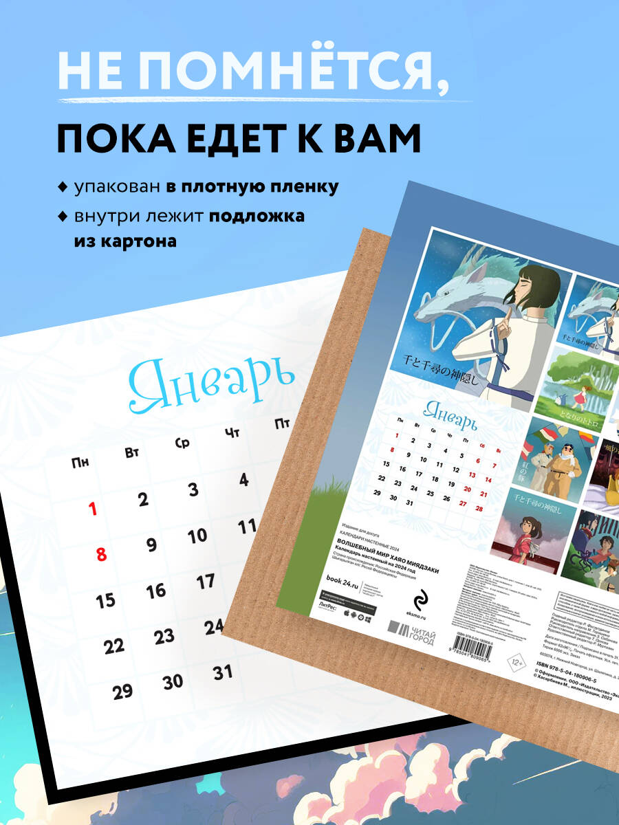 О серии: Наши настенные календари отличаются высоким качеством исполнения! Тщательно подобранные иллюстрации, напечатанные на глянцевой бумаге высочайшего качества, станут настоящим украшением дома, а в календарной сетке найдется место для ваших планов: большие клетки позволят делать записи и организовать свой год! В календаре также отмечены все государственные праздники. В серии настенных календарей издательства «ЭКСМО» каждый найдет тему по вкусу: великие художники, великолепные подборки с самыми знаменитыми произведениями искусства, легендарные кинематографические саги и игры, главные книжные авторы и бестселлеры, фотографии и иллюстрации любимых животных и многое-многое другое! О календаре: Шедевры Хаяо Миядзаки находят отклик в сердцах зрителей любых возрастов во всем мире благодаря его уникальному визуальному языку, теме детства, раскрытой с особенной любовью и добротой, и органичному сочетанию фольклорных мотивов и актуальной проблематики. Всем сердцем любите работы мастера? Тогда этот календарь станет идеальным украшением вашего дома! Авторские иллюстрации от художницы Марии Хасарбиевой наполняет его эстетикой волшебного мира Хаяо Миядзаки, мира детства, искренности и преданности своему идеалу. Внутри вас ждут милые истории и красочные иллюстрации, а также сетка с основными праздниками и местом для записи важных событий. Удобный формат 300х300 мм позволит повесить его абсолютно везде. Подарите себе кусочек хорошего настроения на весь год! Технические параметры: - Тип календаря - настенный перекидной. - Год - 2024. - Календарная сетка - с разбивкой по месяцам. - Вид скрепления - скрепка. - Ширина - 30 см. - Высота - 30 см. - Внутренний блок - мелованная бумага 150 г/м2. - Подложка - плотный гофрокартон для поддержания формы. - Индивидуальная упаковка в плотный целлофановый пакет.