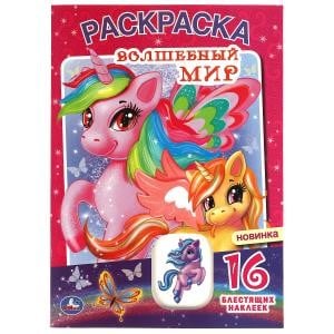 Ребёнок будет рад повстречаться на страницах этой занимательной раскраски с очаровательными волшебными животными. В ней он найдёт красивые картинки с чёткими контурами и яркие наклейки с блёстками. Благодаря удобному формату раскраску можно взять с собой в дорогу.