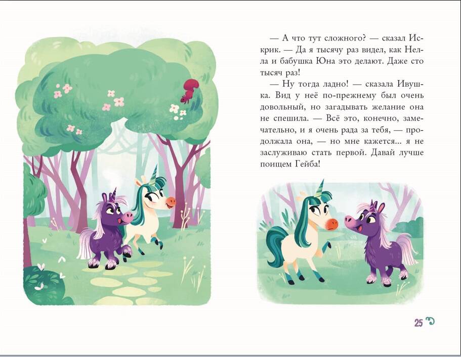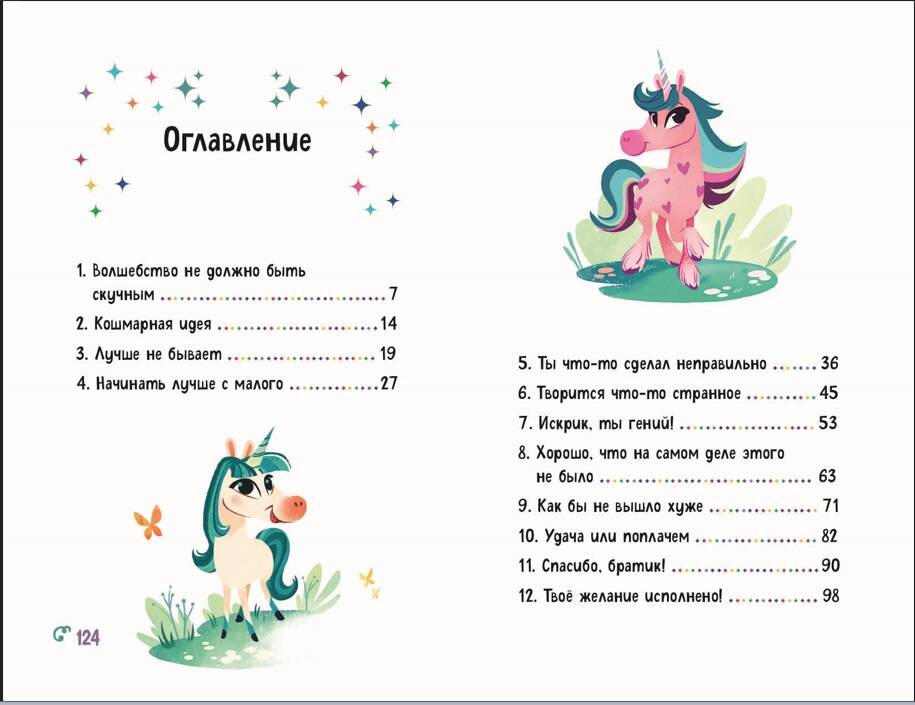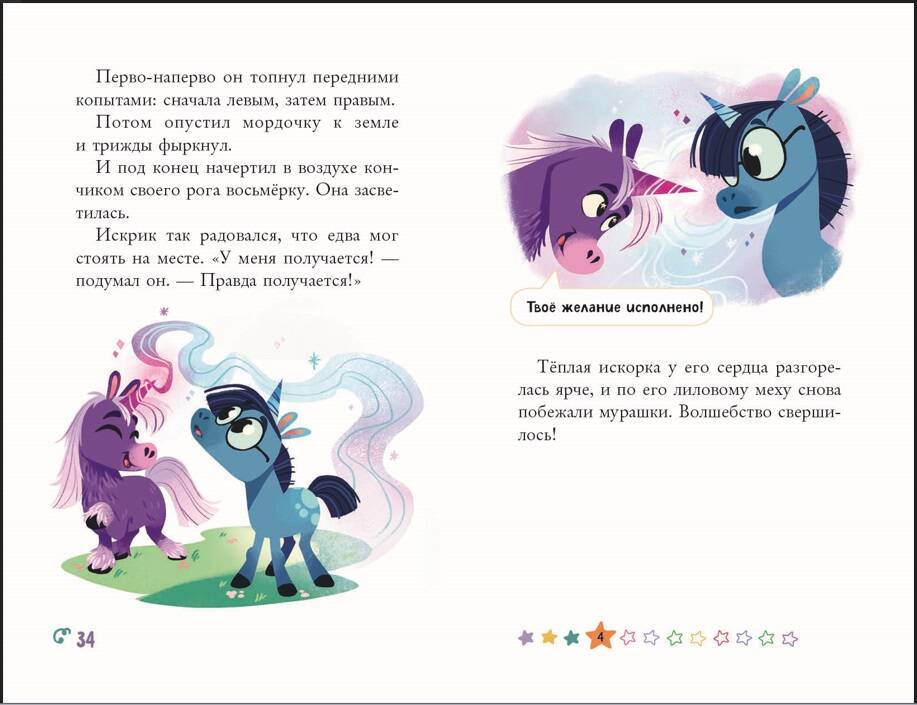 Сестрёнка подарила Искрику дар исполнения желаний! Правда, всего на один день… Значит, у маленького единорога много дел: нужно исполнить все-все желания друзей! Зузу подарить оранжевую гриву, Рози - речку с блёстками. А для вечно хмурого Гейба разогнать тучки. Но все желания исполняются… наоборот! Что же натворил Искрик? И как теперь всё исправить? Почему ВАЖНО прочитать эту книгу? 1) История поможет стать уверенным читателем: динамичный сюжет + короткие главы + яркие иллюстрации. 2) Ребёнка легко замотивировать на чтение. В конце каждой главы есть трекер чтения и мотивирующая фраза. 3) Через комичные ситуации рассказывается о многих проблемах, с которыми дети сталкиваются в реальной жизни. 4) Милые и не всегда идеальные герои помогут понять, что совершать ошибки совсем не страшно. 5) В книге конце книги есть игры, которые помогут осознать прочитанное. Для читателей от 5 до 9 лет.| Издательство | ООО "Издательство "Эксмо" |