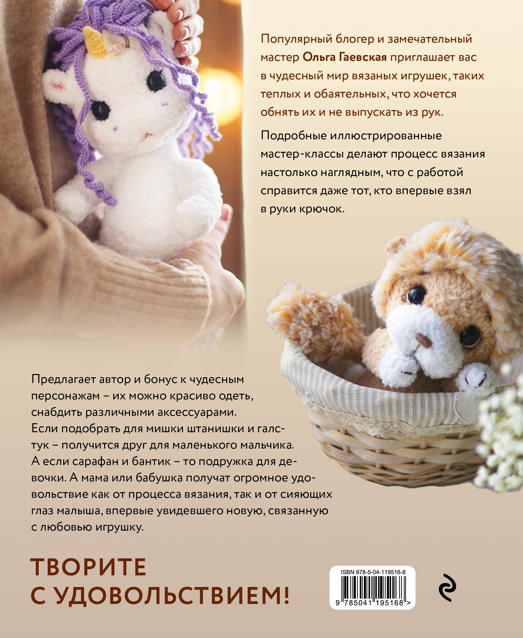 Была ли у вас в детстве любимая игрушка? Именно такая, которая каждую ночь лежала рядом с вашей подушкой и охраняла ваши сны, даже когда совсем потеряла вид от времени? Некоторые и до сих пор хранят своих детских лучших друзей в укромном месте, хоть и стесняются порой в этом признаться. Теплая лапа мягкого мишки или зайки - лучший оберег для ребенка, а если такой ангел-хранитель связан мамиными или бабушкиными руками, он становится дороже и ценнее вдвойне. Ни один малыш не захочет выпустить из рук игрушку, связанную по мастер-классам блогера и замечательного мастера Ольги Гаевской. И не стоит думать, что создать такого бегемотика или единорожку слишком сложно. Каждый шаг в книге описан очень подробно и проиллюстрирован схемой или наглядной фотографией. Покажите книгу ребенку - пусть он выберет себе друга. И свяжите его с любовью!