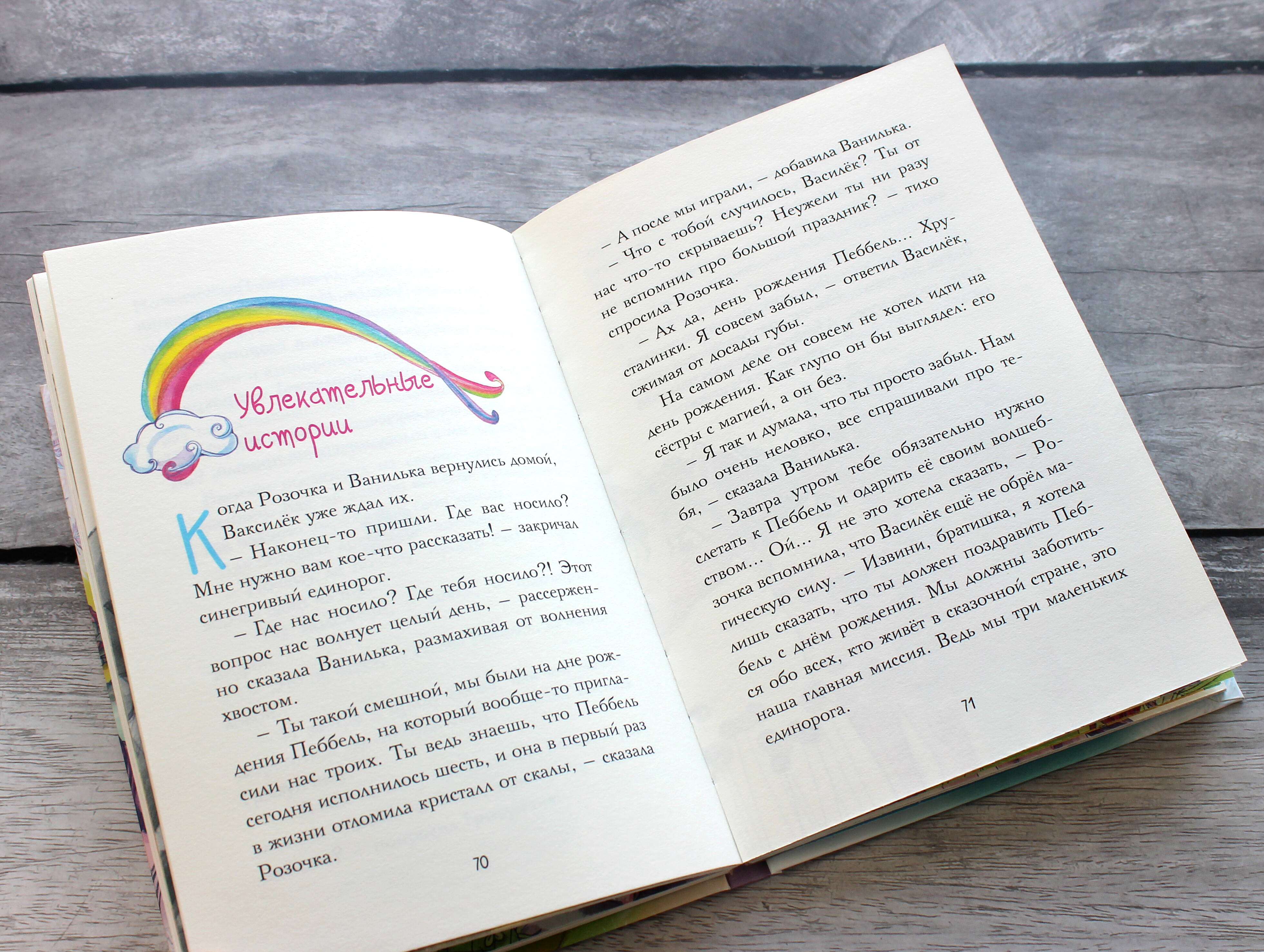 На Рифе мечты сбываются все желания, а Лунное озеро предсказывает будущее! Это мир Ванильки, Розочки и Василька - трех маленьких единорогов с особым даром... «Я принесу тебе удачу», - обещает Розочка. «Я твой лучший друг», - шепчет Ванилька. А Василёк только печально вздыхает. Он тоже хочет открыть в себе хоть какую-нибудь магическую способность! В поисках своей судьбы Василёк отправляется в смелое приключение и летит на Драконий утёс. Туда, куда прежде никогда не ступала нога единорога. Сбудется ли там его заветное желание? Единороги невероятно популярные животные! Это добрые и утончённые создания, которые умеют творить чудеса и очень нравятся современным детям. История поможет ребёнку поверить в себя и взглянуть на мир иначе. Расскажет простым языком о том, почему иногда портится настроение, почему жадиной быть нехорошо и о многом другом. Книгу удобно держать в детских руках, она небольшого формата. Внутри цветные иллюстрации, крупный шрифт и простой текст, который ребёнок сможет прочитать сам, без помощи взрослых.| Издательство | ООО "Издательство "Эксмо" |