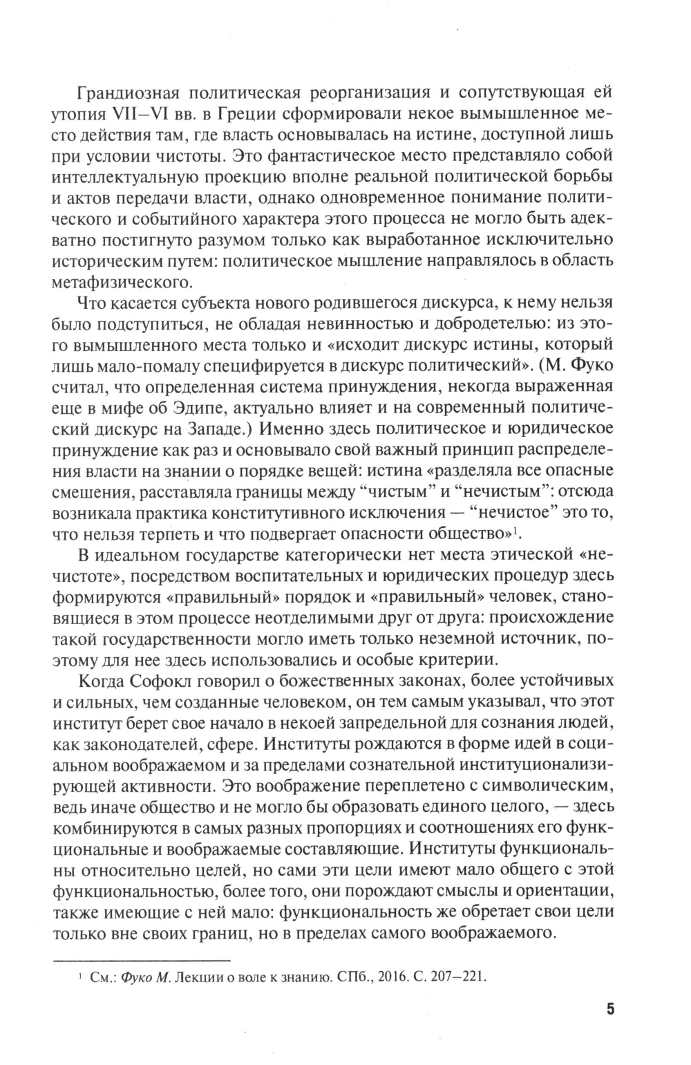 В данной работе речь пойдет о воображаемом государстве, которое одновременно как бы существует и которого как будто нет: причина здесь в том, что оно располагается сразу в двух разноплановых мирах. Воображаемое государство не предназначено для реализации. Однако эта форма политического фантазирования реально стимулирует и мобилизует (или пытается мобилизовать) духовные силы бытия. Фантазия отрицает наличное бытие, перешагивая через него, но она никак не «пустое фантазирование» - формируемые ею «фантазмы» становятся действенными архетипами для политических и правовых преобразований, хоть и не совпадающих с образцами (точнее, образами), но явно ориентированных на них. Фантастическое прожектирование всегда эсхатологично по своей сути, и в этом его величие и опасность: ведь эфемерность и отсутствие реального чувства единства рождает демонов. Воображаемое государство - это «покушение на будущее с негодными средствами», ведь очевидна бесперспективная нереализуемость этого проекта. Однако настоящее его значение в другом: здесь налицо духовный и экспрессивный импульс, исходящий из самой глубины этоса, создающего идею. Поэтому нереализуемость становится как бы дополнительным стимулом к свободе политического творчества, а идеал - недосягаемым и поэтому особенно желанным образцом для практического строительства. Данная монография предназначена для специалистов в области теории права правовой и политической идеологии, а также всех интересующихся историей правовой и политической мысли.| Издательство | Проспект |