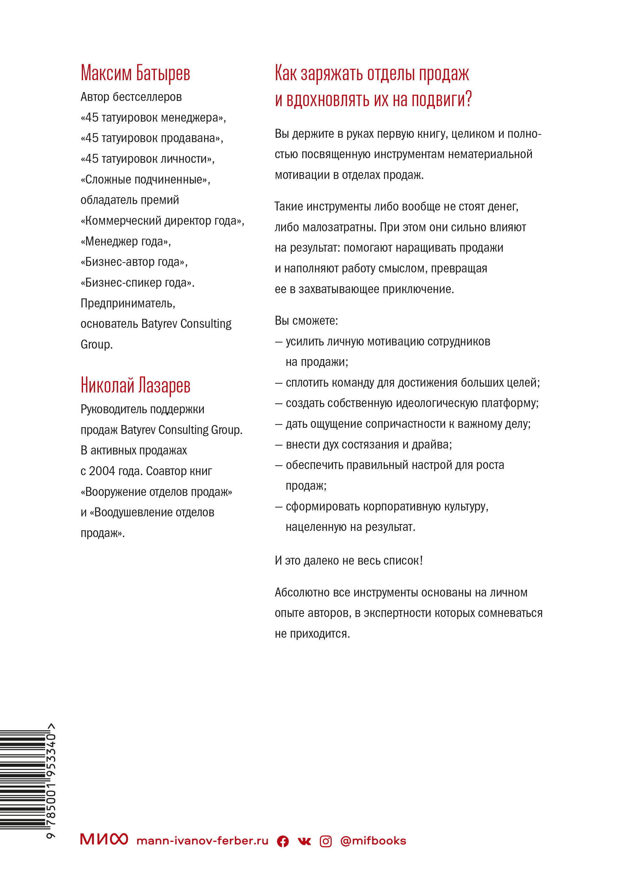 Аннотация: Воодушевление отделов продаж. Инструменты нематериальной мотивации