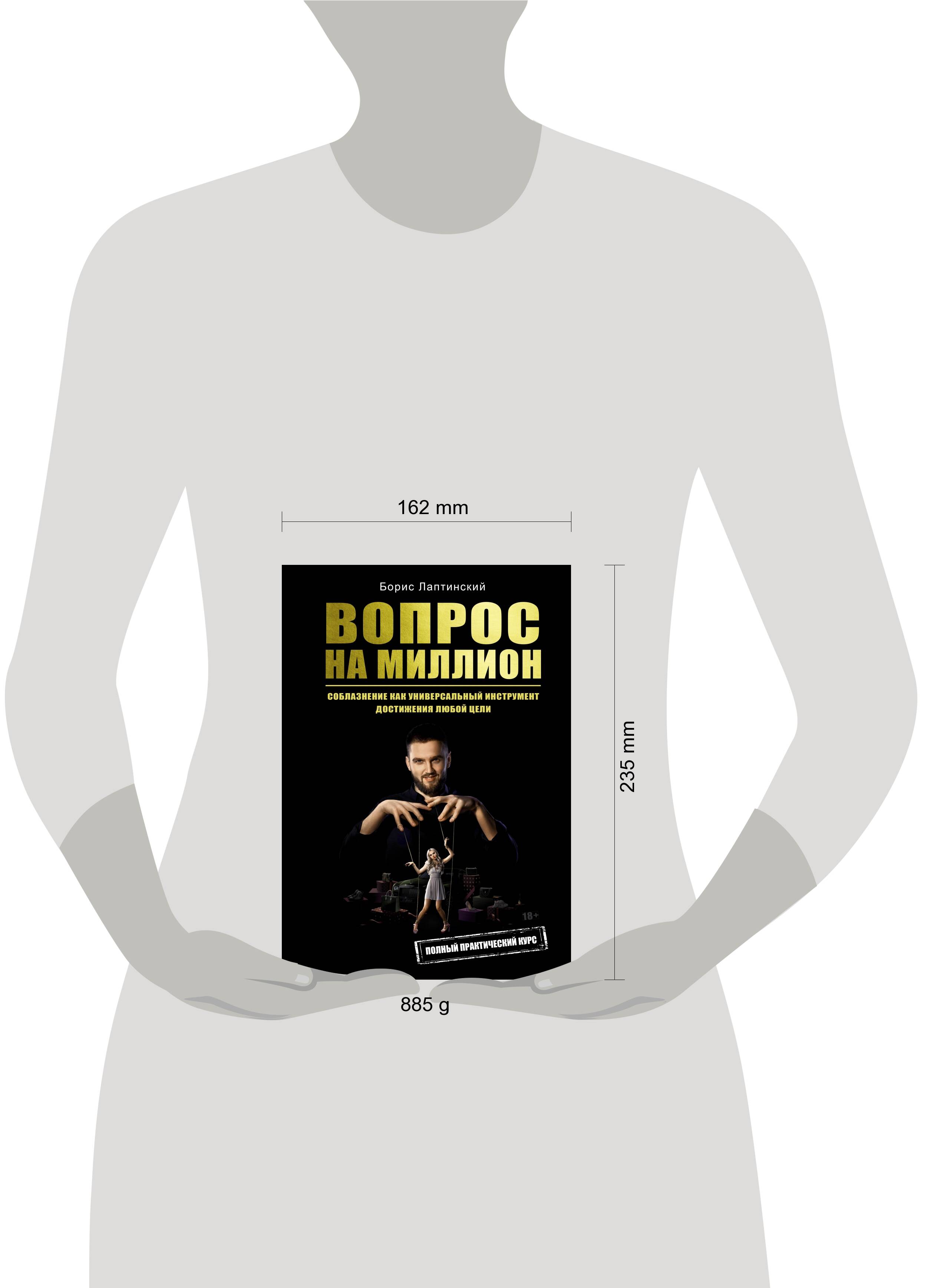 Книга "Вопрос на миллион" явилась результатом более чем 10-летней работы автора как психолога и сексолога. В сорока вопросах систематизирована практика, включающая не только соблазнение, но и удержание отношений с девушками, и правила бесконфликтного расставания с ними. Следуя советам и рекомендациям этой книги, читатель получит возможность не только добиться успеха в отношениях с женщинами, но и серьезно улучшить свой уровень жизни в целом, так как соблазнение от Бориса Лаптинского - это целый комплекс конкретных правил и схем, безотказно работающих в любой сфере жизни.| Издательство | ИЗДАТЕЛЬСТВО "АСТ" |