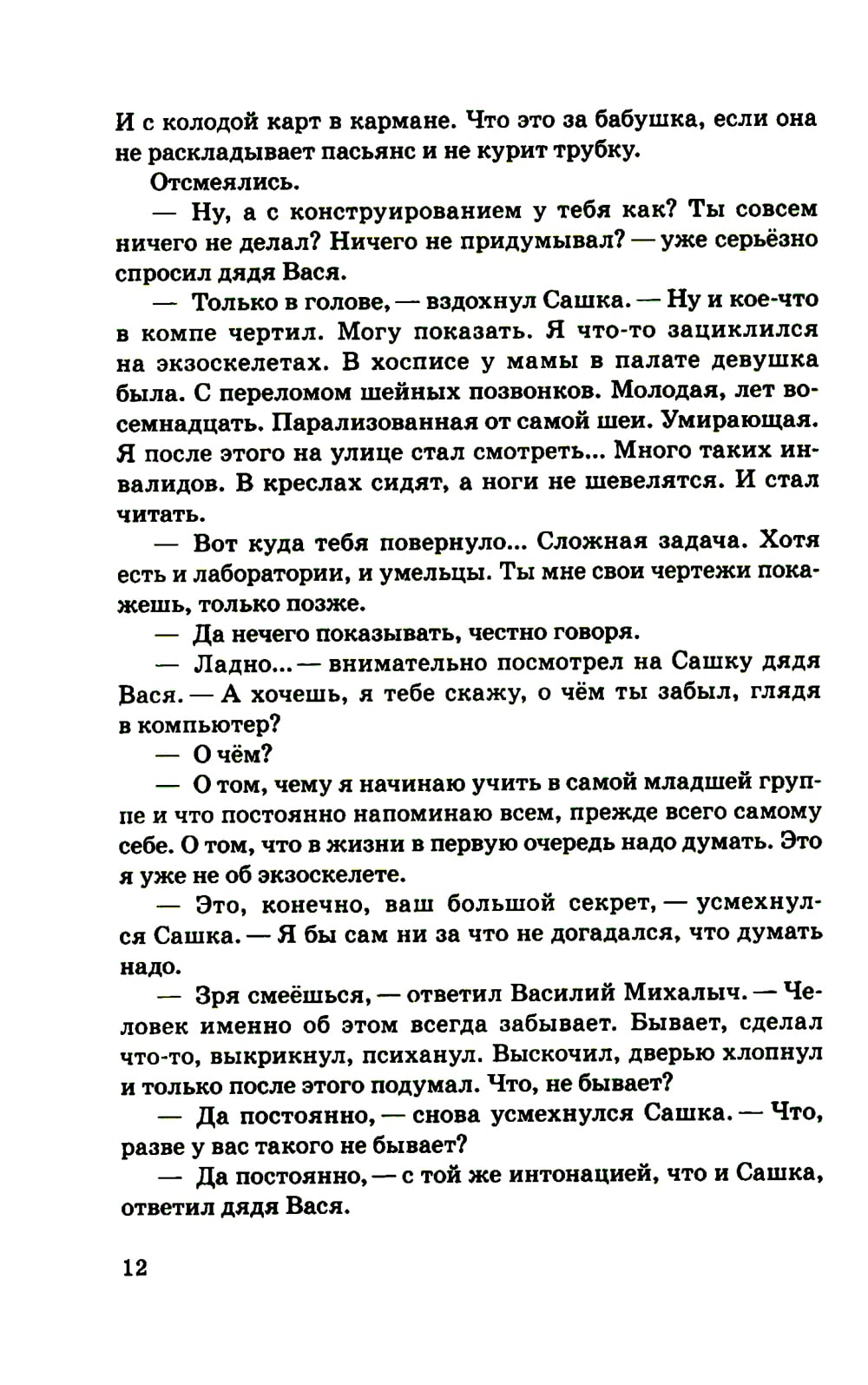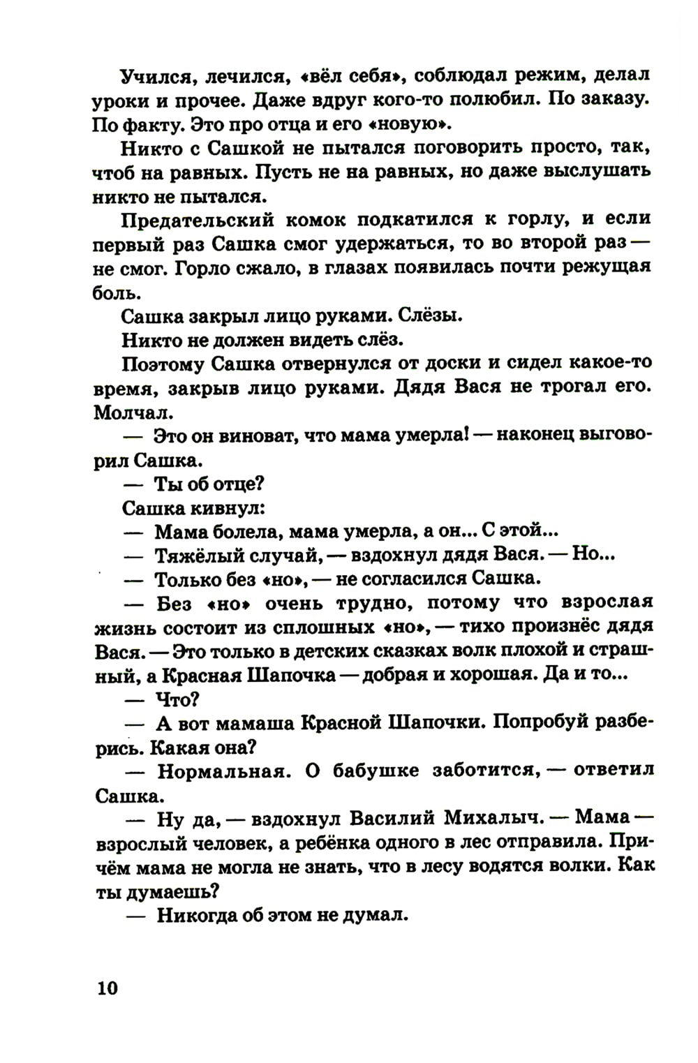 Сашка - обычный пятнадцатилетний подросток, который живёт с мамой и папой. Он ходит в школу, веселится с друзьями и увлекается робототехникой. Всё как у всех. Но однажды его счастливый мир рушится: любимая мама умирает от неизлечимой болезни. Как Сашке пережить это? Мальчику придётся столкнуться с семейными секретами, готов ли он принять правду? Теперь Сашке предстоит сделать выбор: жить в иллюзиях и одиночестве или начать действовать.| Издательство | Феникс |