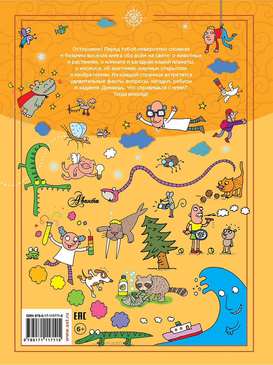 Осторожно! Перед тобой невероятно сложная и безумно весёлая книга обо всём на свете: о животных и растениях, о климате и загадках нашей планеты, о космосе, об анатомии, научных открытиях и изобретениях... На каждой странице встретятся удивительные факты, вопросы, загадки, ребусы и задания. Думаешь, что справишься с ними? Тогда вперёд! Для среднего школьного возраста.| Издательство | ИЗДАТЕЛЬСТВО "АСТ" |