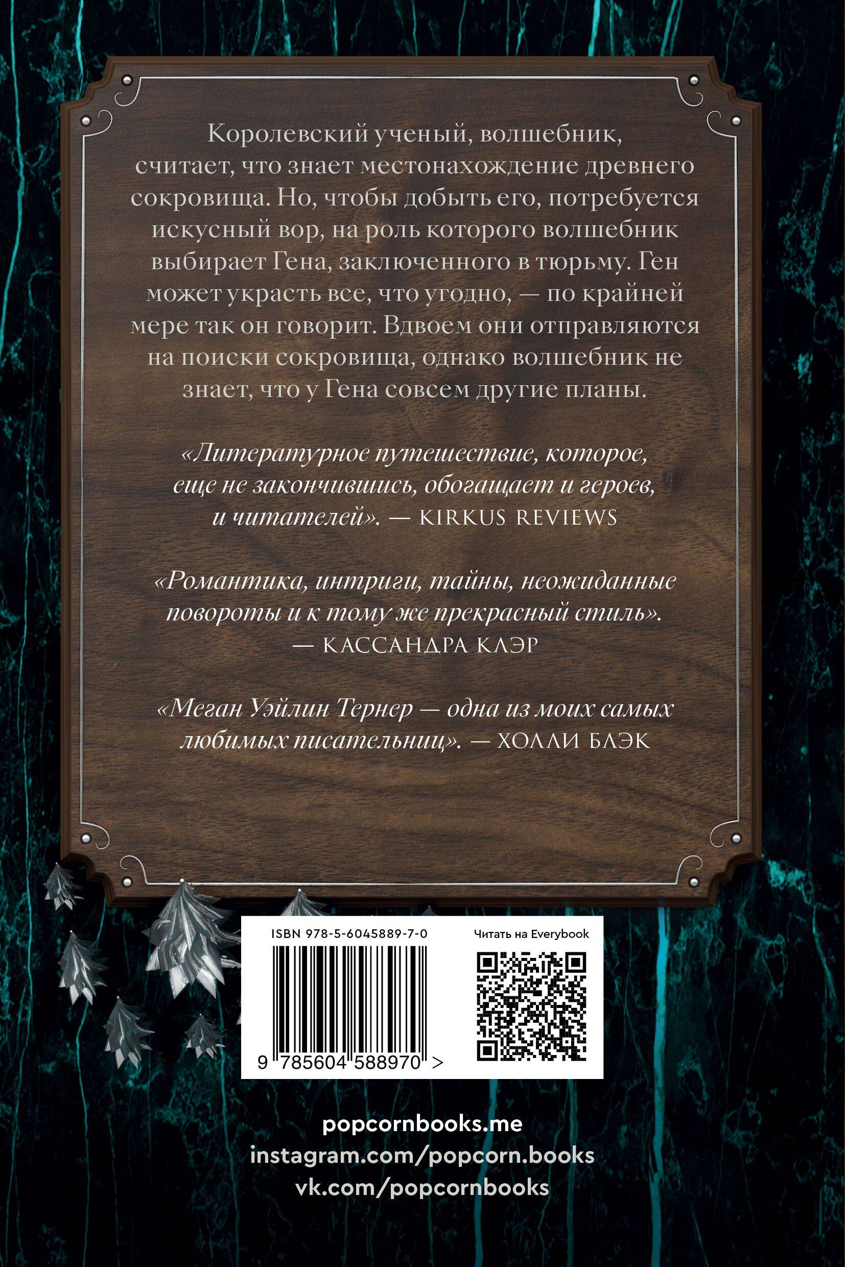 Королевский ученый, волшебник, считает, что знает местонахождение древнего сокровища. Но чтобы добыть его, потребуется искусный вор, на роль которого волшебник выбирает Гена, заключенного в тюрьму. Ген может украсть все что угодно - по крайней мере, так он говорит. Вместе с солдатом и двумя учениками волшебника они отправляются на поиски сокровища, однако волшебник не знает, что у Гена совсем другие планы…| Издательство | ИНДИВИДУУМ ПРИНТ ООО |