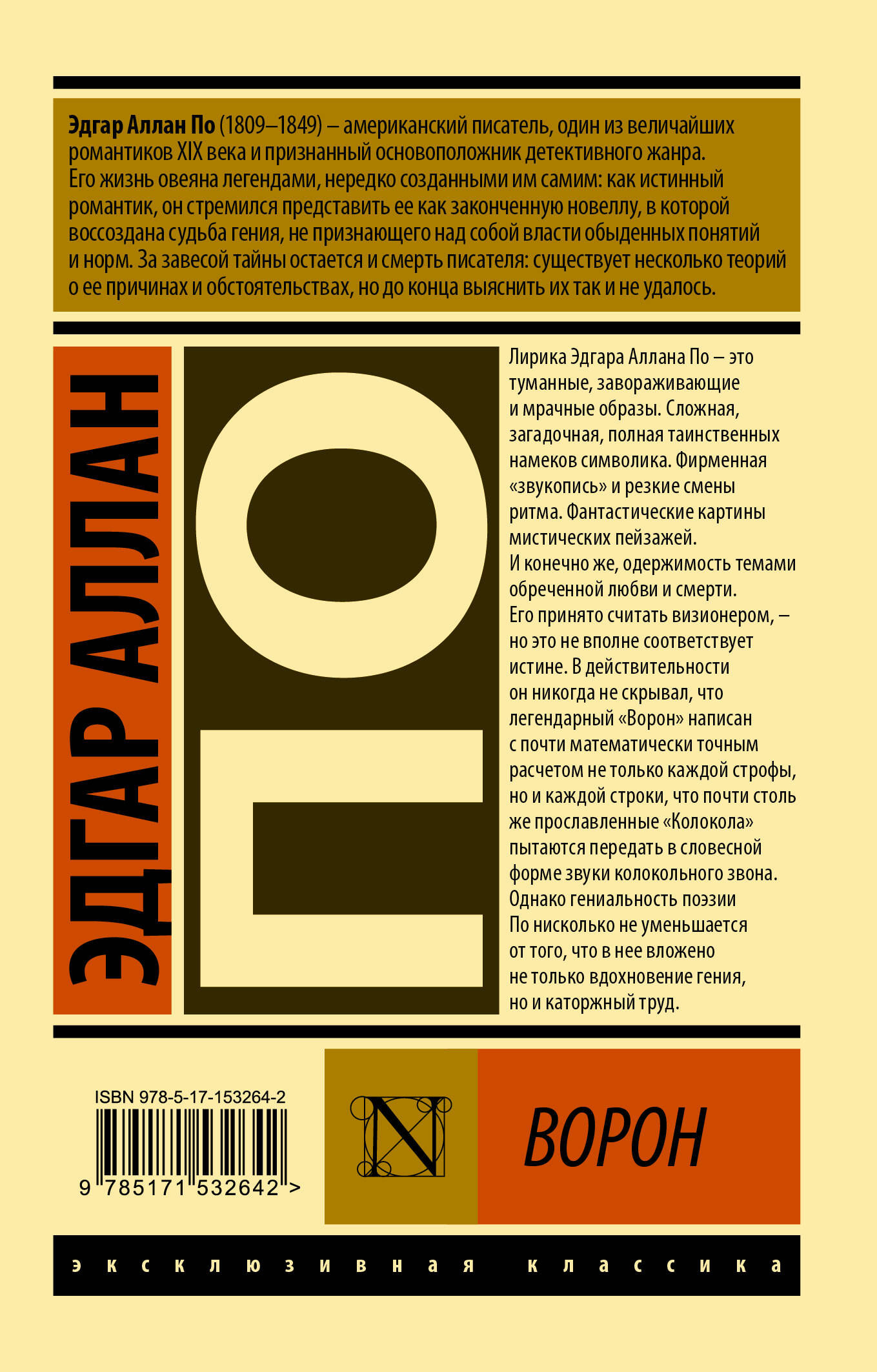 Готическая поэзия от одного их лучших мастеров жанра - Эдгара Аллана По. Лирика писателя - это настоящий фонтан мистических образов, пугающих историй и чувственных мотивов. Подойдет для фанатов Брэма Стокера и Говарда Филлипса Лавкрафта.| Издательство | ИЗДАТЕЛЬСТВО "АСТ" |