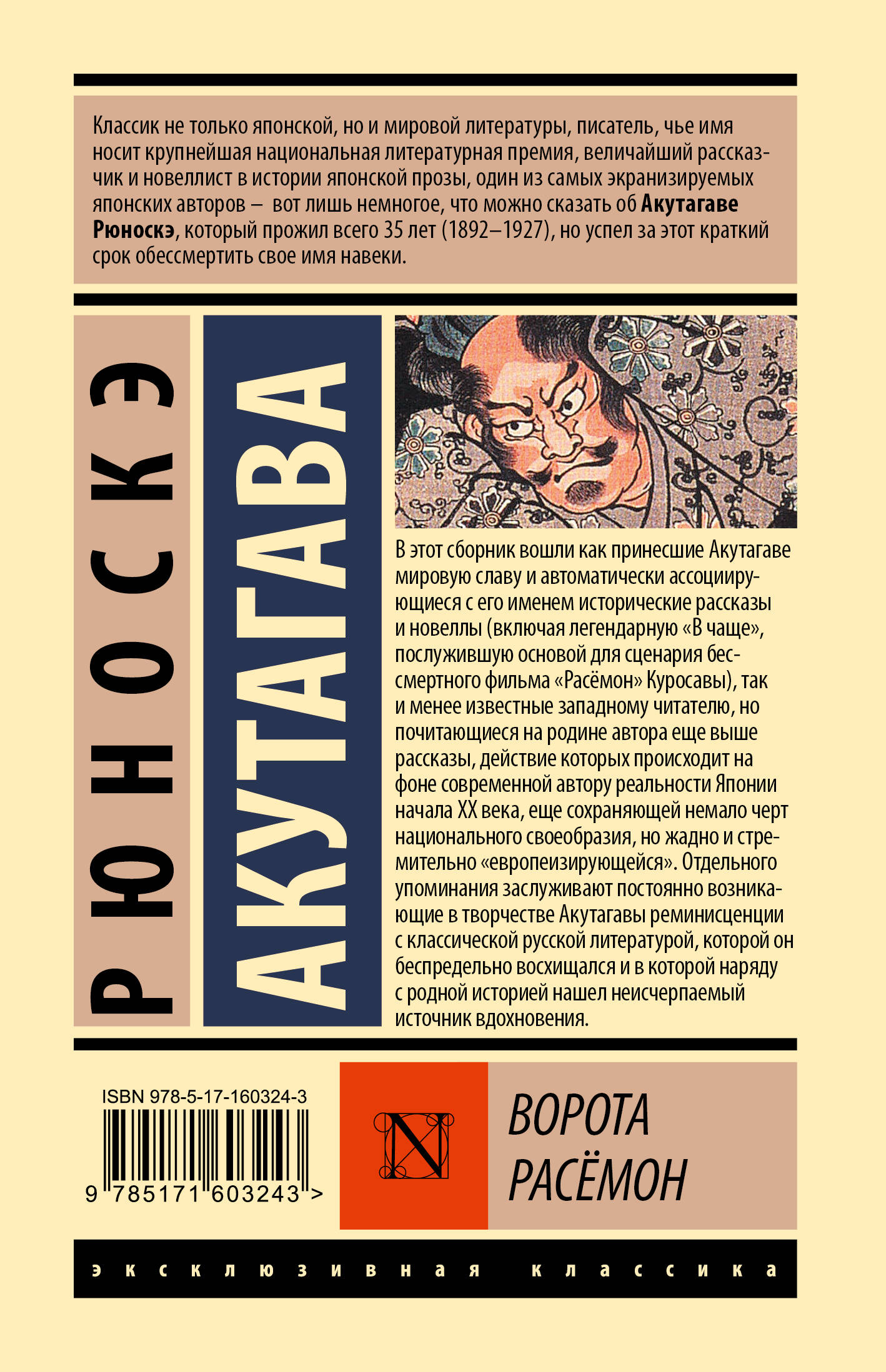 Самый популярный сборник Акутагавы в новом переводе Евгении Хузиятовой. Рюноске Акутагава - один из самых читаемых в Европе японских писателей. Рассказы «Ворота Расёмон» и «В чаще» легли в основу легендарного фильма Акиры Куросавы «Расёмон» - лауреата премии «Оскар» в номинации «Лучший иностранный фильм».| Издательство | Издательство "АСТ" |