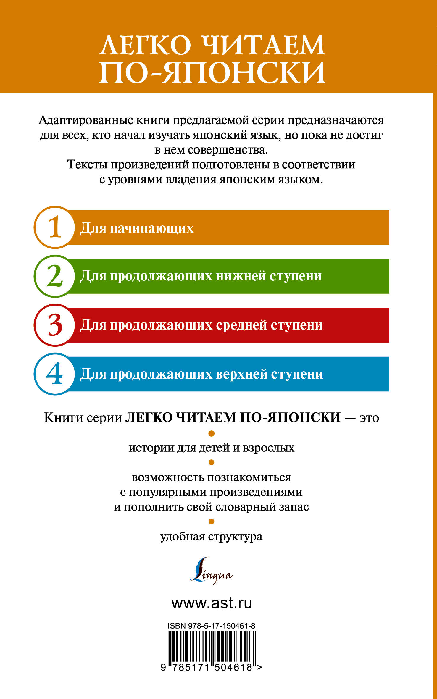 Рюноске Акутагава (1892-1927) - писатель, считающийся одним из наиболее значимых авторов японской литературы XX века. В сборник вошли как рассказы, принесшие Акутагаве мировую славу (например, "Ворота Расёмон", послуживший основой для сценария оскароносного фильма Куросавы, и "Паутинка", адаптированный в виде аниме-анталогии "Классические истории"), так и малоизвестные западному читателю рассказы, несущие в себе черты национального своеобразия. Адаптация рассказов, перевод, культурологические комментарии, составление упражнений и словаря выполнены доцентом кафедры японской филологии Института стран Азии и Африки МГУ Наталией Крнетой. Издание подойдет всем, кто начинает учить японский язык и стремится читать на японском языке.| Издательство | ИЗДАТЕЛЬСТВО "АСТ" |