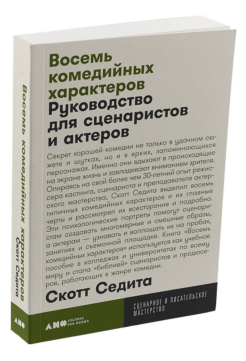 Секрет хорошей комедии не только в удачном сюжете и шутках, но и в ярких, запоминающихся персонажах. Именно они вдыхают в происходящее на экране жизнь и завладевают вниманием зрителя. Опираясь на свой более чем 30 летний опыт режиссера кастинга, сценариста и преподавателя актерского мастерства, Скотт Седита выделил восемь типичных комедийных характеров и их главные черты и рассмотрел их всесторонне и подробно. Созданные им психологические портреты помогут сценаристам создавать многомерные и смешные образы, а актерам - узнавать и воплощать их на пробах, занятиях и съемочной площадке. Книга "Восемь комедийных характеров" используется как учебное пособие в колледжах и университетах по всему миру и стала "библией" сценаристов и продюсеров, работающих в жанре.| Издательство | Альпина Паблишер ООО |