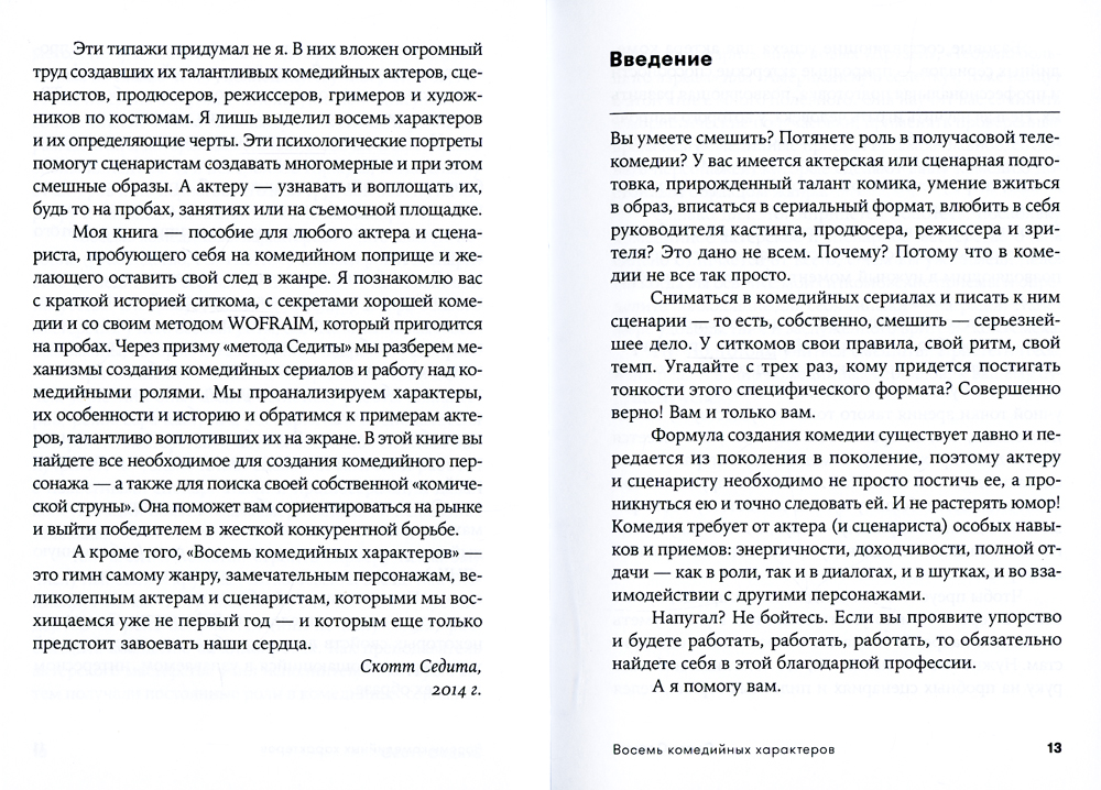 Секрет хорошей комедии не только в удачном сюжете и шутках, но и в ярких, запоминающихся персонажах. Именно они вдыхают в происходящее на экране жизнь и завладевают вниманием зрителя. Опираясь на свой более чем 30-летний опыт режиссера кастинга, сценариста и преподавателя актерского мастерства, Скотт Седита выделил восемь типичных комедийных характеров и их главные черты и рассмотрел их всесторонне и подробно. Созданные им психологические портреты помогут сценаристам создавать многомерные и смешные образы, а актерам - узнавать и воплощать их на пробах, занятиях и съемочной площадке. Книга «Восемь комедийных характеров» используется как учебное пособие в колледжах и университетах по всему миру и стала «библией» сценаристов и продюсеров, работающих в жанре комедии.| Издательство | Альпина нон-фикшн |