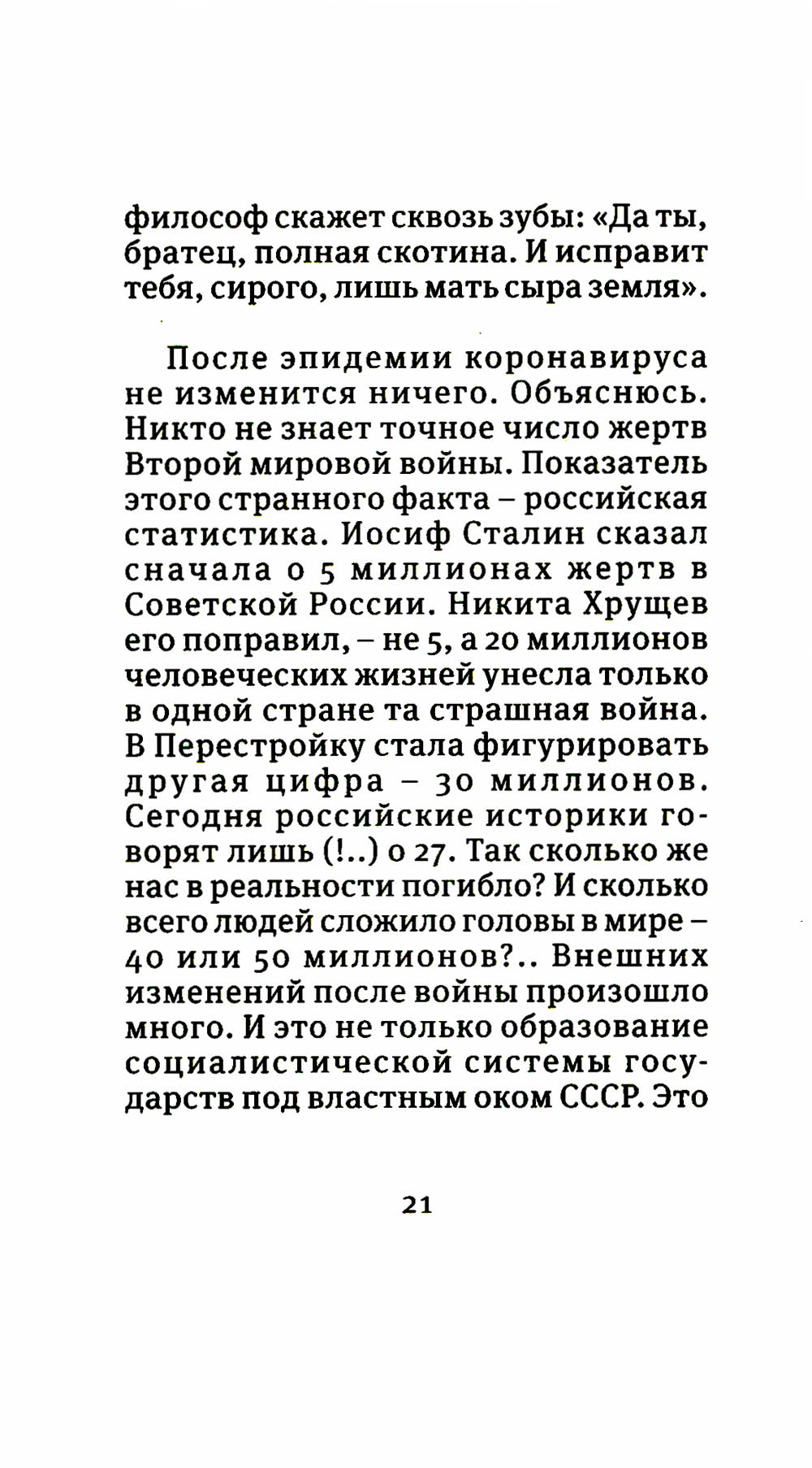 «Восемь миллиардов Золушек» - сборник новелл и эссе, в котором девять российских авторов поделились своими мыслями о пандемии, её последствиях и немного заглянули в возможные варианты развития будущего. Читая эти тексты, поражаешься широтой взглядов авторов, их способностью задействовать целые эпохи -размышления об истории и её ритмах часто встречаются в сборнике, - и думать в масштабах вселенной. Кроме того, эти сочинения напоминают нам о том, что поэзия «интуитивно способна выразить то, что ещё не облекается в научные категории»...| Издательство | Nouveaux Angles |