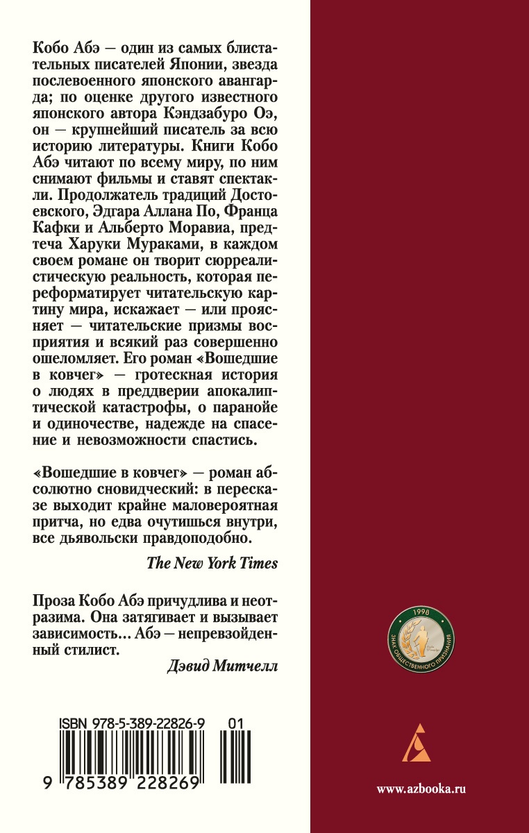 Кобо Абэ - один из самых блистательных писателей Японии, звезда послевоенного японского авангарда; по оценке другого известного японского автора Кэндзабуро Оэ, он - крупнейший писатель за всю историю литературы. Книги Кобо Абэ читают по всему миру, по ним снимают фильмы и ставят спектакли. Продолжатель традиций Достоевского, Эдгара Аллана По, Франца Кафки и Альберто Моравиа, предтеча Харуки Мураками, в каждом своем романе он творит сюрреалистическую реальность, которая переформатирует читательскую картину мира, искажает - или проясняет - читательские призмы восприятия и всякий раз совершенно ошеломляет. Его роман «Вошедшие в ковчег» - гротескная история о людях в преддверии апокалиптической катастрофы, о паранойе и одиночестве, надежде на спасение и невозможности спастись.| Издательство | Азбука |