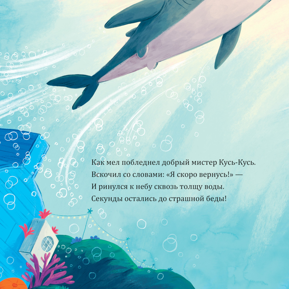 Восхитительный мистер Кусь-Кусь - главная звезда океана: он обаятелен, воспитан и всегда готов прийти на выручку, если кто-то попал в беду. Так он и поступил, когда одна несчастная рыбешка попала в сети. Мистер Кусь-Кусь отважно ринулся ее спасать, но... напугал еще больше! Ах, да... Вы же не знаете, что Кусь-Кусь не только звезда океана, но и ве-ге-та-ри-а-нец!| Издательство | Клевер-Медиа-Групп |