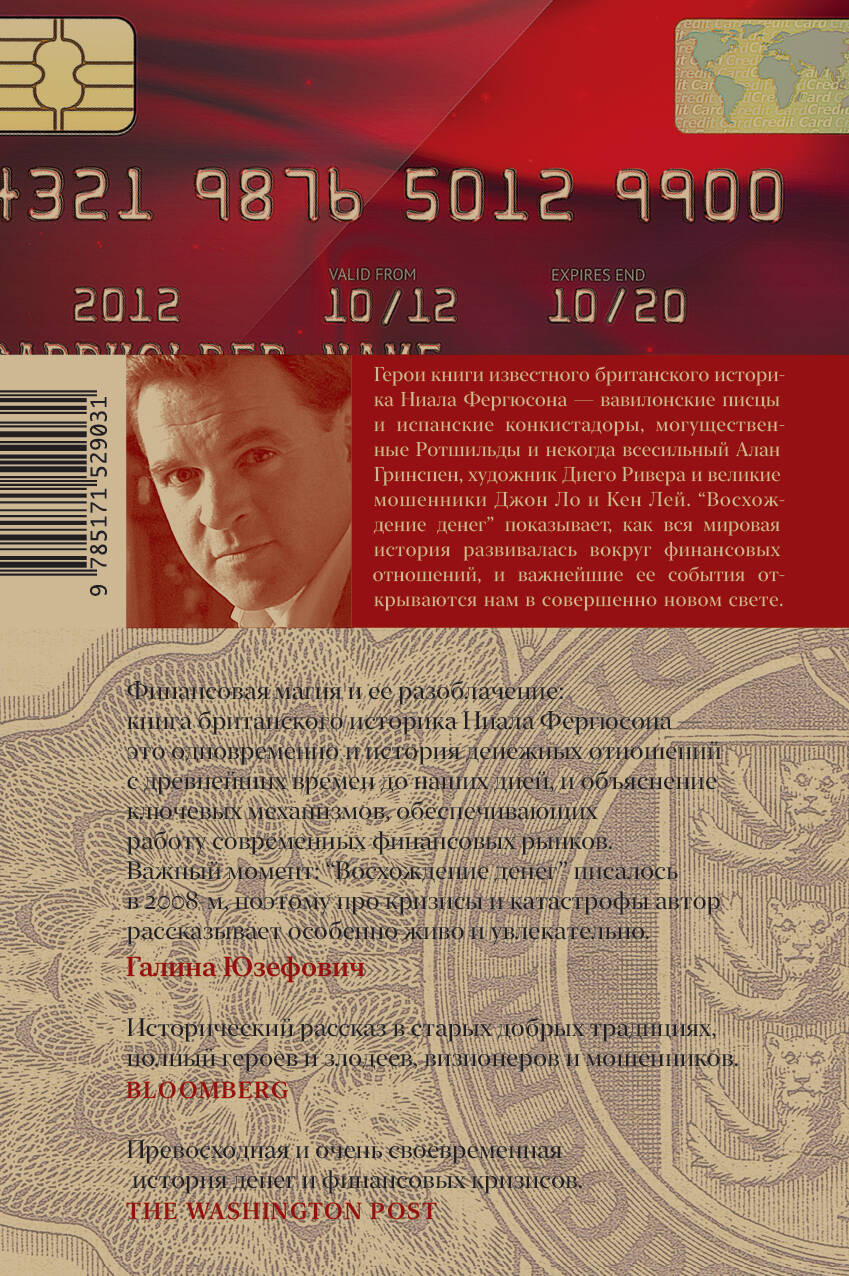 Пословица гласит, что деньги движут миром. Но что именно это значит? Чем важны деньги и как они стали играть ключевую роль в нашей жизни? В книге "Восхождение денег. Финансовая история мира" Ниал Фергюсон, один из самых авторитетных ныне живущих историков, рассказывает историю возникновения денег и их эволюции вплоть до современности. Он объясняет, как абстракция стала важнее реального предмета, и наглядно показывает проблему финансовых пузырей мировой экономики. Прочитав эту книгу, вы узнаете, благодаря чему семейство Медичи возвысилось и стало богатейшей семьей во Флоренции времен Ренессанса, как пузырь фондового рынка во Франции XVIII века привел к Великой Французской Революции и как Диего Гуальпа, открывший серебряные месторождения в Перу, стал виновником инфляции во всей Европе. Фергюсон обращается и к современным проблемам денежного мира. Каждая глава посвящена какому-то конкретному аспекту финансов, например, рынку облигаций, фондовому рынку, ипотеке и т.д. Так, каждое описываемое событие рассматривается с нескольких точек зрения. Автор предлагает глубокий анализ мировых финансовых кризисов и снабжает читателя инструментарием для понимания глобальных изменений на мировой арене.| Издательство | Издательство "АСТ" |