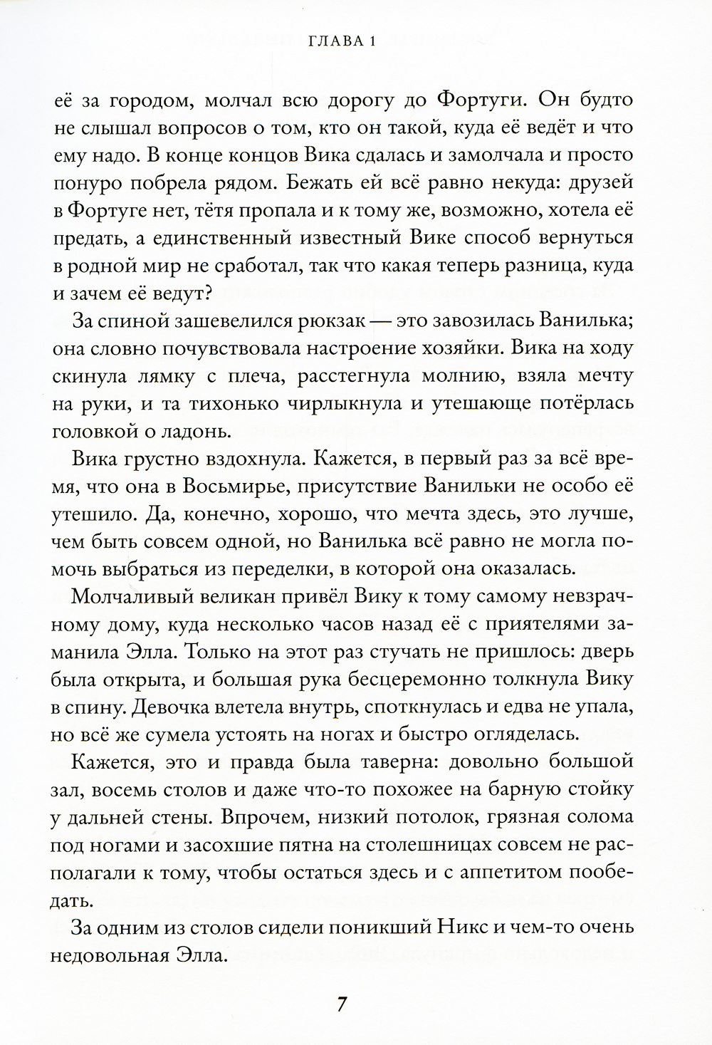 Город Фортуга, тайное пристанище темноходов, - главная надежда Вики на то, чтобы узнать, где её пропавшая тётя, ведь здесь живёт картограф, карта которого может показать местонахождение любого человека в Восьмирье. Однако город преподаёт ей старый урок - не все желания исполняются сразу и далеко не всё бывает так, как хочется. На пути к цели Вику ждёт ещё вереница испытаний и сюрпризов: встреча в лучах ночной радуги, опасная пичалька, от которой придётся спасать приятеля, и нелегкий выбор ради попавшей в беду тёти.| Издательство | Абрикобукс |