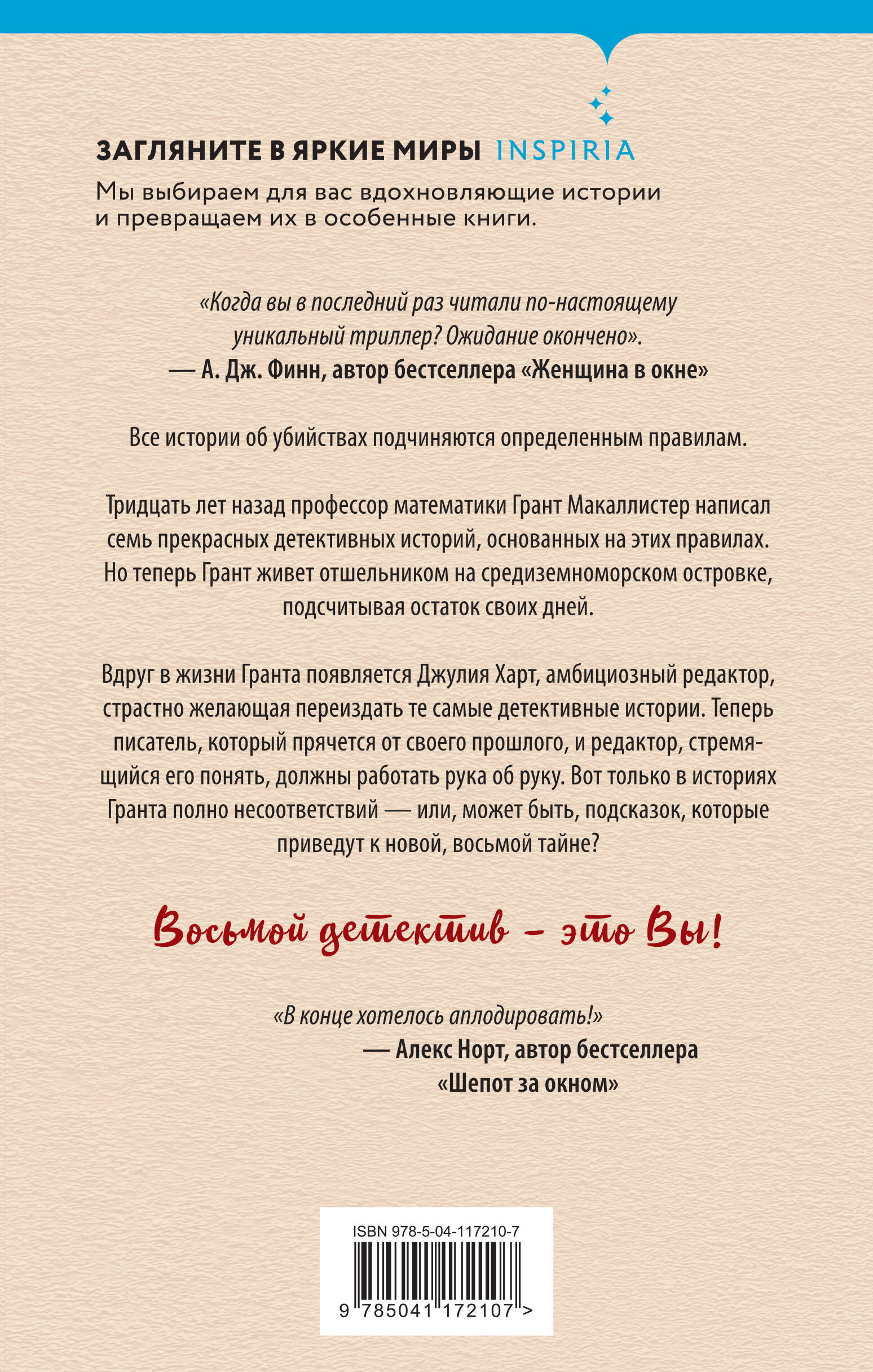 Тридцать лет назад профессор математики Грант Макаллистер в этих правилах разобрался и написал семь прекрасных детективных историй. Но это было слишком давно, ведь теперь Грант живет отшельником на средиземноморском островке, подсчитывая остаток своих дней.