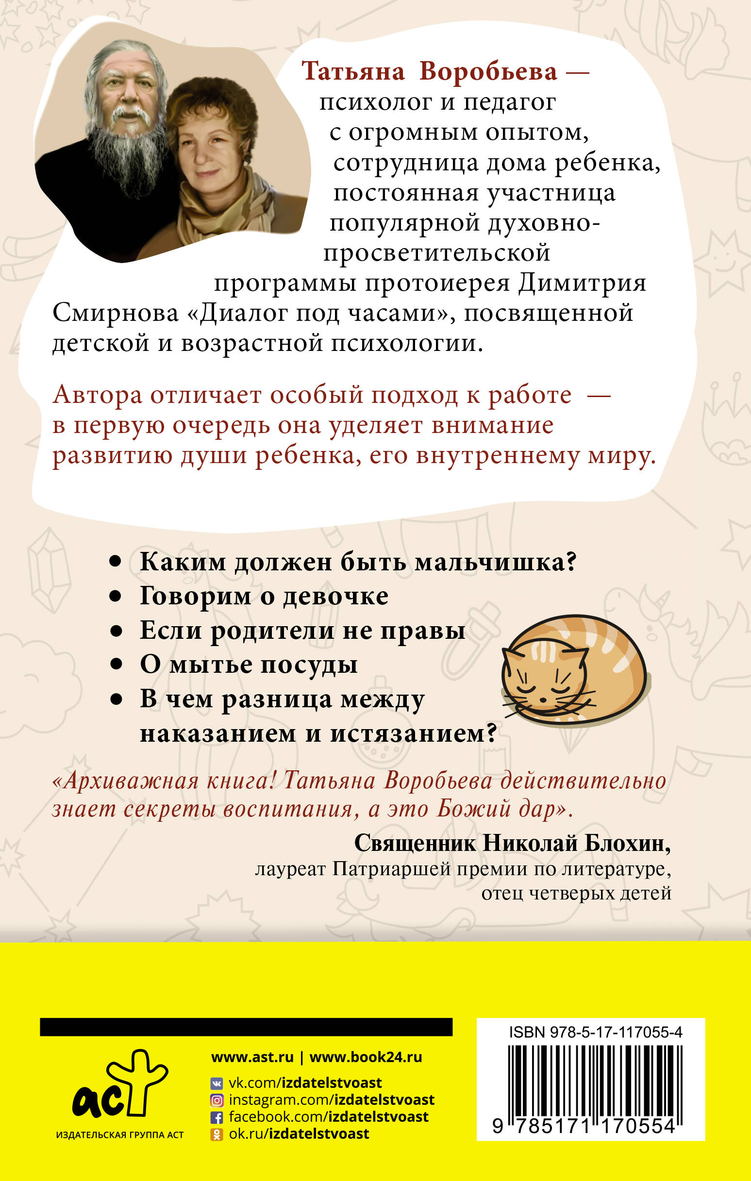 Татьяна Владимировна Воробьева - психолог и педагог с огромным стажем и опытом, сотрудница Дома ребенка, постоянная участница популярной духовно-просветительской программы о детской и возрастной психологии с протоиереем Димитрием Смирновым "Диалог под часами". Автора отличает особый подход к работе, в первую очередь она уделяет внимание развитию души ребенка, его внутреннему миру.| Издательство | Издательство "АСТ" |