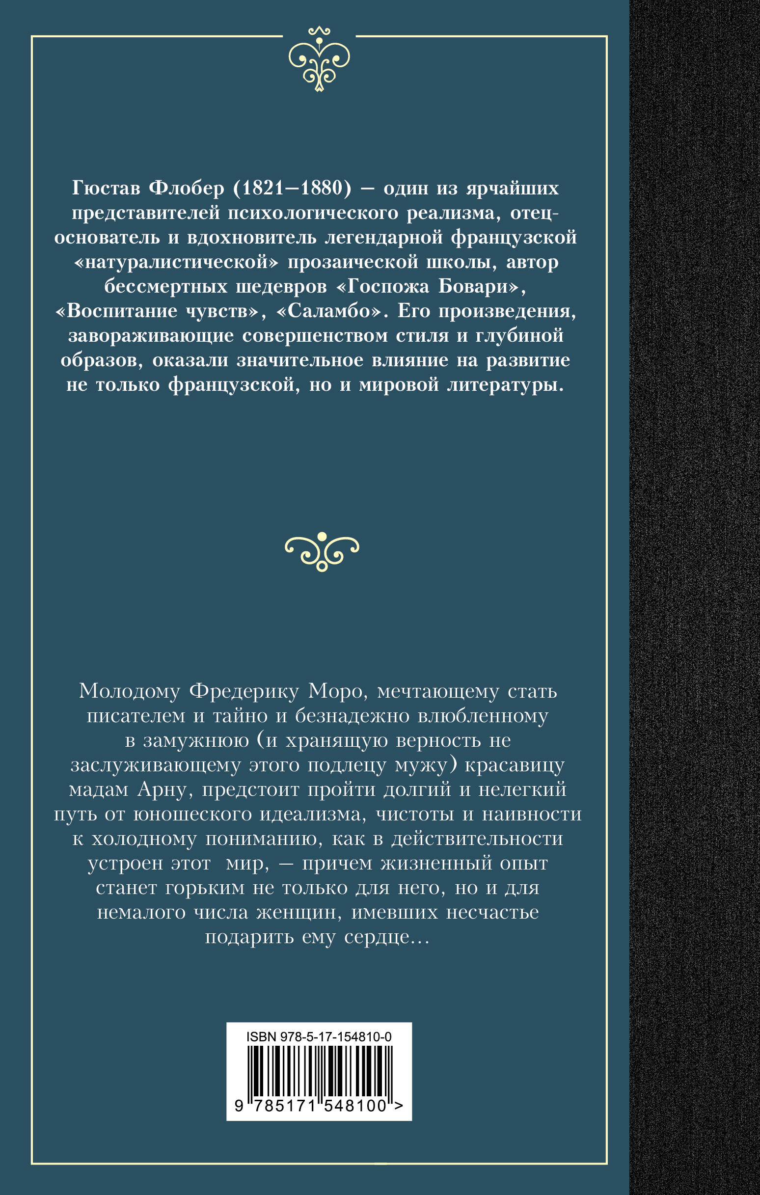 История обретения жизненной мудрости жестоким путем постепенной утраты всех и всяческих иллюзий - одна из любимых тем французской литературы психологического реализма. Однако мало кому удавалось прописать эту тему так же глубоко, умно и иронично, как сделал это Флобер в своем блистательном романе "Воспитание чувств". Молодому Фредерику Моро, мечтающему стать писателем и тайно и безнадежно влюбленному в замужнюю (и хранящую верность не заслуживающему этого подлецу мужу) красавицу мадам Арну, предстоит пройти долгий и нелегкий путь от юношеского идеализма, чистоты и наивности к холодному пониманию, как в действительности устроен этот мир, - причем жизненный опыт станет горьким не только для него, но и для немалого числа женщин, имевших несчастье подарить ему сердце...| Издательство | ИЗДАТЕЛЬСТВО "АСТ" |