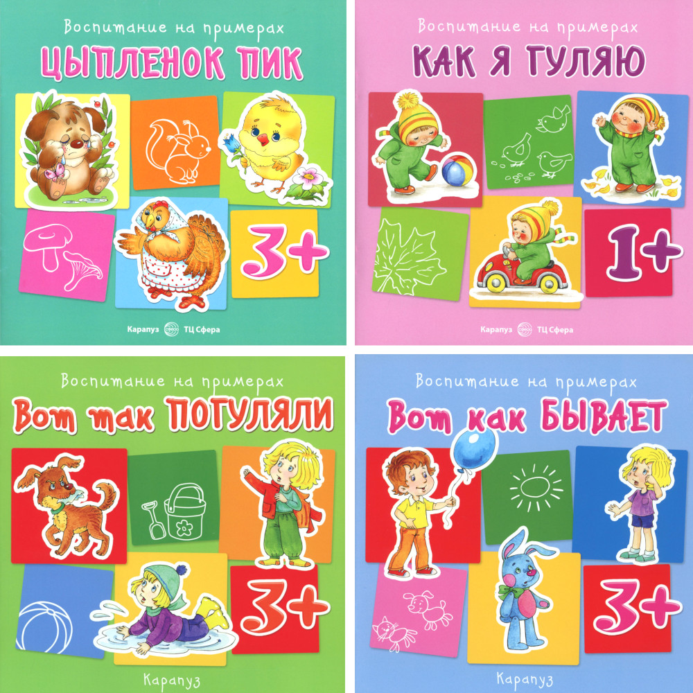 После двух лет в ребенке просыпаются сложные эмоциональные процессы - он начинает осознавать себя как личность и выстраивать отношения с окружающими. Часто это проявляется в стремлении к психологическим манипуляциям - капризах, обидах, тестировании воли родителей и границ дозволенного. Сложный, но очень важный период. Требуется терпение, выдержка и, главное, осознанное понимание момента! Наказаниями делу не поможешь. На что же можно опереться и как достичь разумного компромисса между ХОЧУ и МОЖНО? Комплект состоит из 4 книг: 1. Воспитание на примерах. Как я гуляю (для детей 1-3 лет) 2. Воспитание на примерах. Вот как бывает (для детей 3-5 лет) 3. Воспитание на примерах. Цыпленок Пик (для детей 3-5 лет) 4. Воспитание на примерах. Вот так погуляли (для детей 3-5 лет).| Издательство | Творческий центр Сфера |