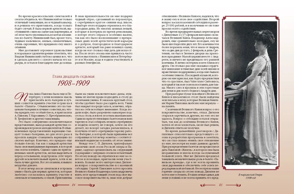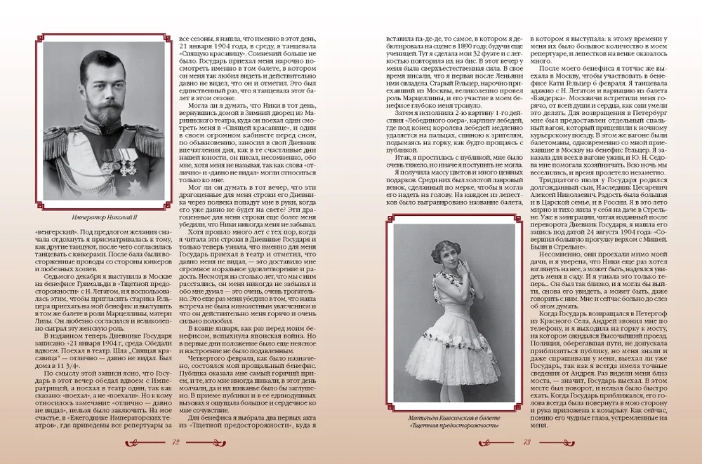 Личность Матильды Кшесинской окружена ореолом таинственности и скандальности. Гениальная балерина, доводившая публику своим танцем до экстаза, красавица и расчетливая кокетка. Кем была на самом деле эта женщина, имя которой не сходило с уст ее современников? Ее романы с высокопоставленными особами, среди которых были наследник престола Николай Александрович, будущий император Николай II, великие князья Сергей Михайлович и Андрей Владимирович, будоражили воображение высшего общества. Матильда Кшесинская прожила долгую и интересную жизнь, полную взлетов и падений, похожую на захватывающий роман. Воспоминания легендарной балерины - это увлекательное чтение, на страницах которого оживают известные исторические персонажи (император и императрица, Григорий Распутин, великие князья и княгини, знаменитые артисты и балетмейстеры и т. д.), бушуют страсти не только на театральных подмостках, но и в жизни, плетутся интриги и за кулисами, и в кулуарах. И все это на фоне глобальных и страшных исторических катаклизмов - Первой мировой войны, революции и Второй мировой войны... Мы сохранили все главы оригинального текста, убрав лишь некоторые малозначительные эпизоды и оставив все самое интересное и важное. Книга проиллюстрирована многочисленными фотографиями, портретами, рисунками и шаржами русских и западных художников, запечатлевшими сюжеты и лица того трагического времени, в котором жила и творила Матильда Кшесинская.