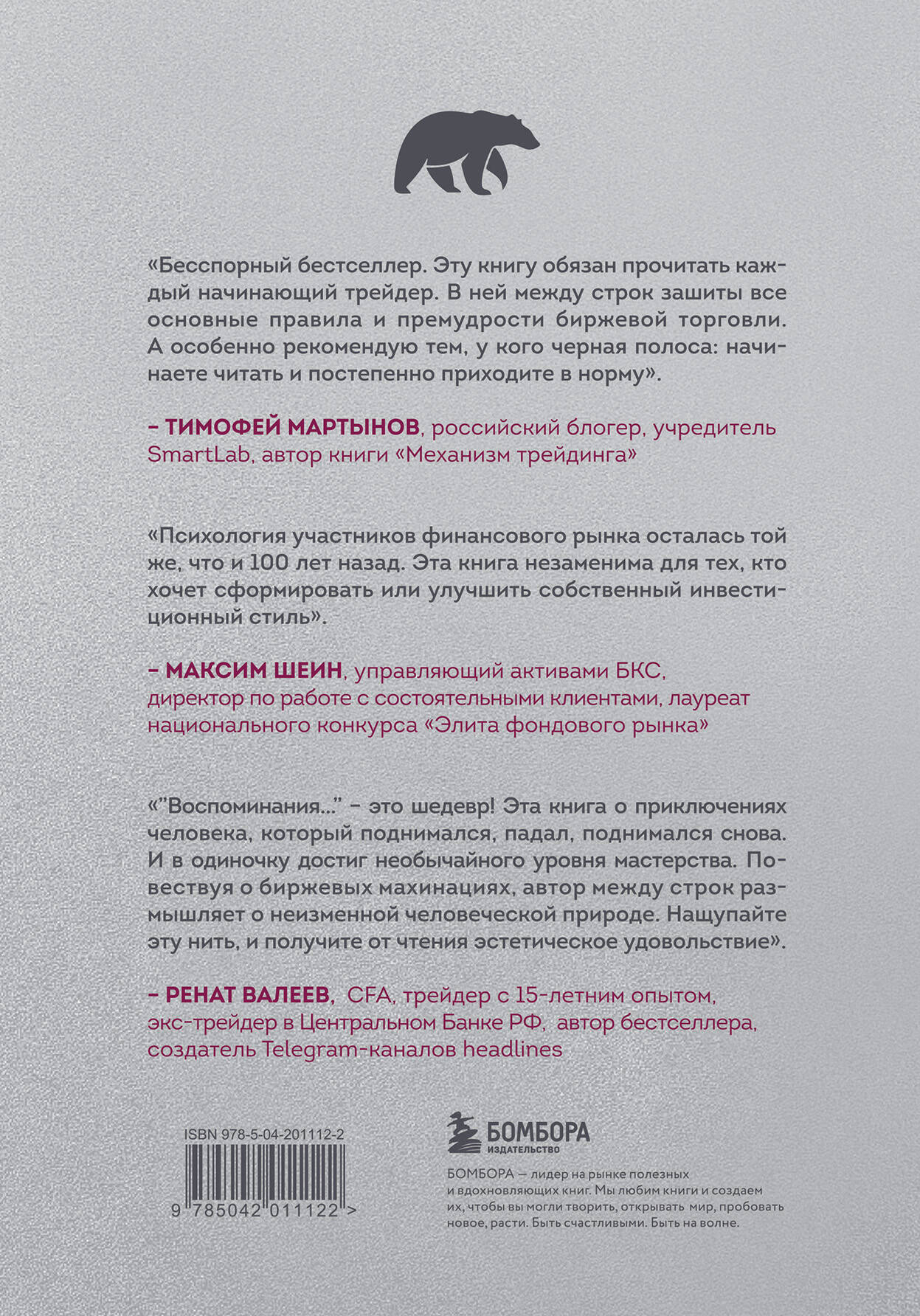 История, актуальная уже более 100 лет! Книга погружает нас в атмосферу Уолл-стрит начала XX века. Один из сильнейших трейдеров мира Джесси Ливермор начал карьеру в брокерской конторе 15-летним подростком. Он не раз зарабатывал миллионы, терял их и зарабатывал вновь. На пути к успеху этот знаменитый финансист: - выявил психологические аспекты спекуляций; - научился извлекать выгоду из кризиса; - обзавелся собственными секретами биржевой торговли. Хитрости выживания в кровавом мире дилеров, банкиров и коммерсантов автор книги щедро снабжает подробностями исторических и экономических событий. «Воспоминания биржевого спекулянта» - важнейшая книга в жизни любого трейдера! «Бесспорный бестселлер. Эту книгу обязан прочитать каждый начинающий трейдер. В ней между строк зашиты все основные правила и премудрости биржевой торговли. А особенно рекомендую тем, у кого черная полоса: начинаете читать и постепенно приходите в норму». - Тимофей Мартынов, российский блогер, учредитель SmartLab, автор книги «Механизм трейдинга» «Психология участников финансового рынка осталась той же, что и 100 лет назад. Эта книга незаменима для тех, кто хочет сформировать или улучшить собственный инвестиционный стиль». - Максим Шеин, управляющий активами БКС, директор по работе с состоятельными клиентами, лауреат национального конкурса «Элита фондового рынка» «"Воспоминания..." - это шедевр! Спросите об этом любого ветерана рынков. Эта книга об игре! О приключениях человека, который поднимался, падал, поднимался снова. В одиночку благодаря своей выдержке достиг необычайного уровня мастерства и покорил грандиозные вершины. При этом он был таким же человеком, как и мы. Повествуя о биржевых махинациях, автор между строк размышляет о неизменной человеческой природе. Нащупайте эту нить, и получите от чтения подлинное эстетическое удовольствие». - Ренат Валеев, CFA, трейдер с 15-летним опытом, экс-трейдер в Центральном Банке РФ, автор бестселлера, создатель Telegram-каналов headlines| Издательство | ООО "Издательство "Эксмо" |