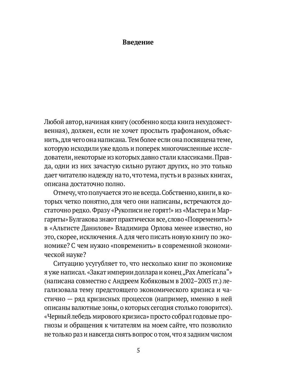 Издание представляет собой популярное авторское изложение экономических закономерностей, которые делают наш мир таким, каков он на сегодня есть. Через призму экономики и экономических процессов пропущены основополагающие события в истории человечества: смена формаций, открытие и завоевание новых материков и земель, появление религиозных доктрин, войны, их предпосылки и последствия. Особое внимание уделяется Глобальным Проектам, которые диктуют миру свои условия; кризисам, их зарождению, развитию и результатам. Автор, известный российский экономист и политолог, Михаил Хазин, пишет, что в книге отражено «как бы мне хотелось, чтобы выглядело преподавание экономики, под какую линию эту науку нужно выстроить».| Издательство | Рипол Классик |