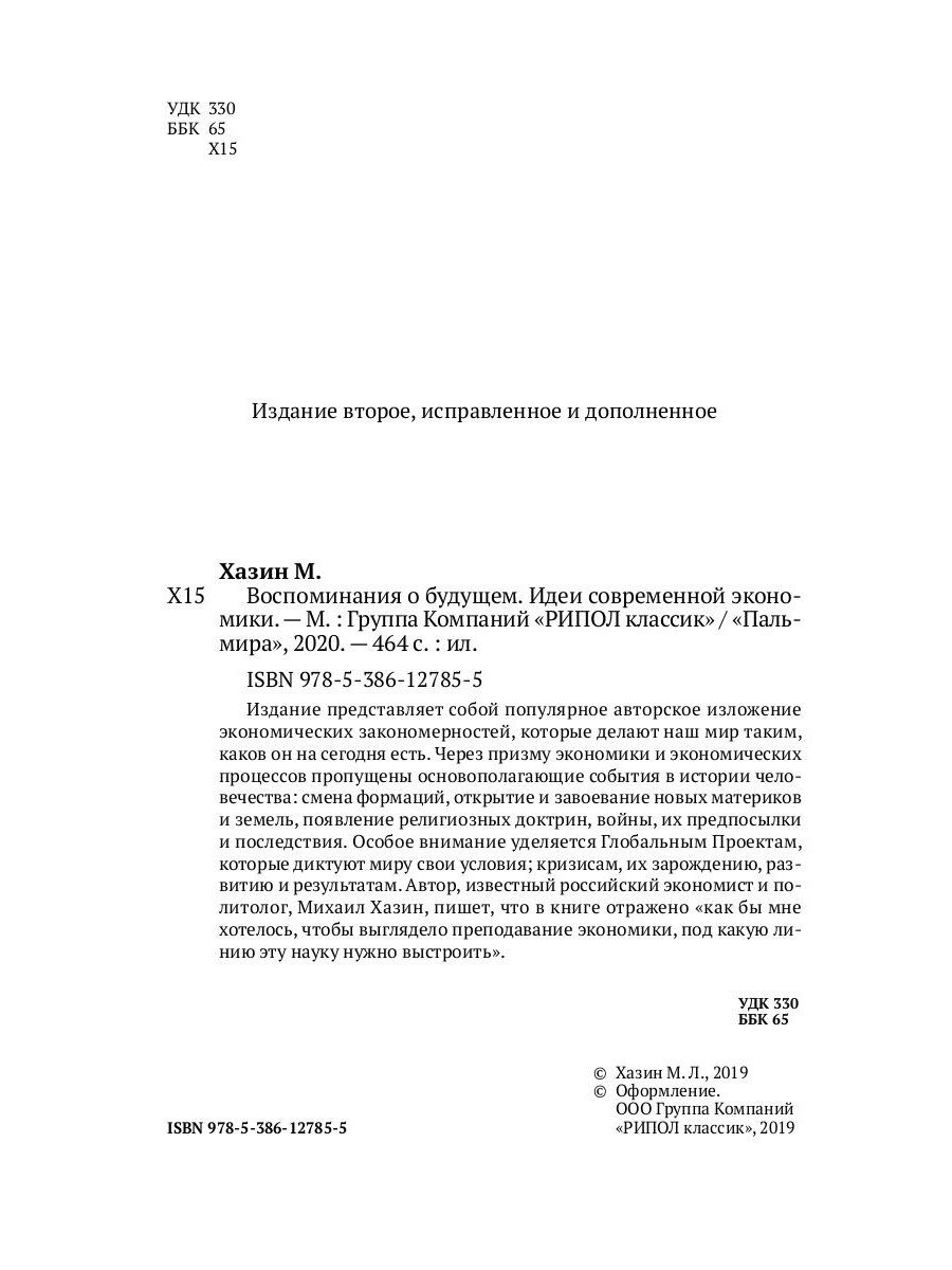 Аннотация: Воспоминания о будущем. Идеи современной экономики. 2-е изд., испр. и доп
