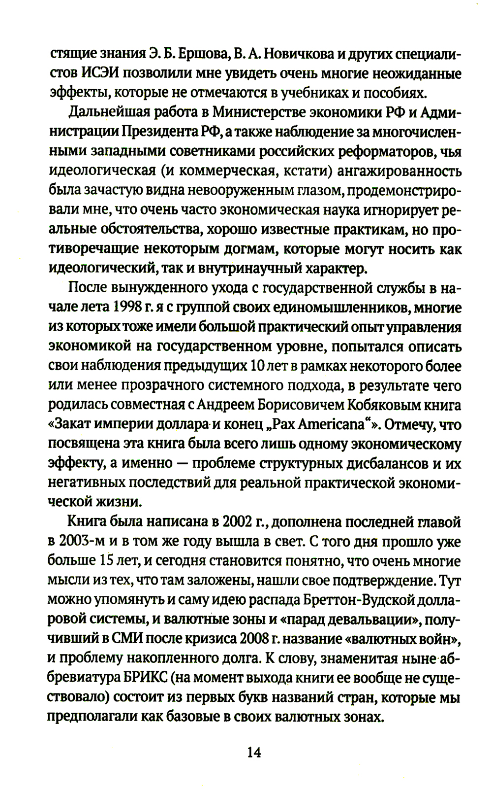 Издание представляет собой популярное авторское изложение экономических закономерностей, которые делают наш мир таким, каков он есть на сегодняшний день. Через призму экономики и экономических процессов пропущены основополагающие события в истории человечества: смена формаций, открытие и завоевание новых материков и земель, появление религиозных доктрин, войны, их предпосылки и последствия. Особое внимание уделяется Глобальным Проектам, которые диктуют миру свои условия; кризисам, их зарождению, развитию и результатам. Автор, известный российский экономист и политолог Михаил Хазин, отразил в этой книге свое представление о том, как должно выглядеть преподавание экономики, «под какую линию эту науку нужно выстроить».| Издательство | Рипол Классик |