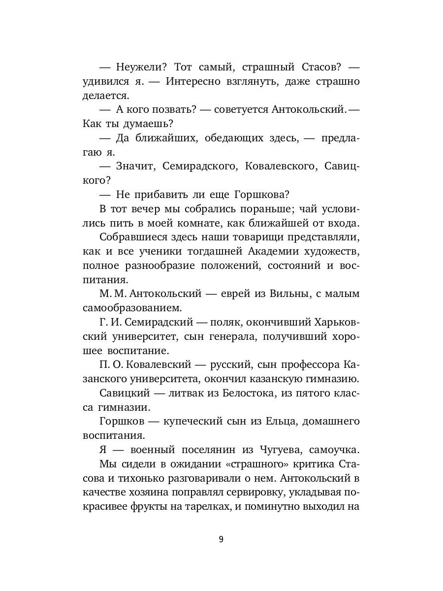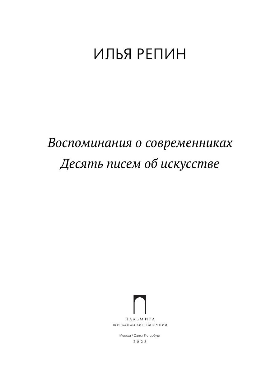 В настоящее издание вошли воспоминания Ильи Репина о современниках, впервые опубликованные в книге "Далекое близкое" в 1937 году, представляющие И. Е. Репина как яркого мемуариста. Среди прочих, Репин посвятил эссе живописцам Валентину Серову и Архипу Куинджи, скульптору-реалисту Марку Антокольскому, классикам русской литературы Льву Толстому и Всеволоду Гаршину, а также критику Владимиру Стасову. Помимо воспоминаний о современниках, в сборник включены "Десять писем об искусстве" - цикл путевых заметок, написанных Репиным во время длительной поездки по Европе в 1893-1894 годах и опубликованных "Театральной газетой" и "Неделей" под заглавием "Заметки художника (письма из-за границы)".