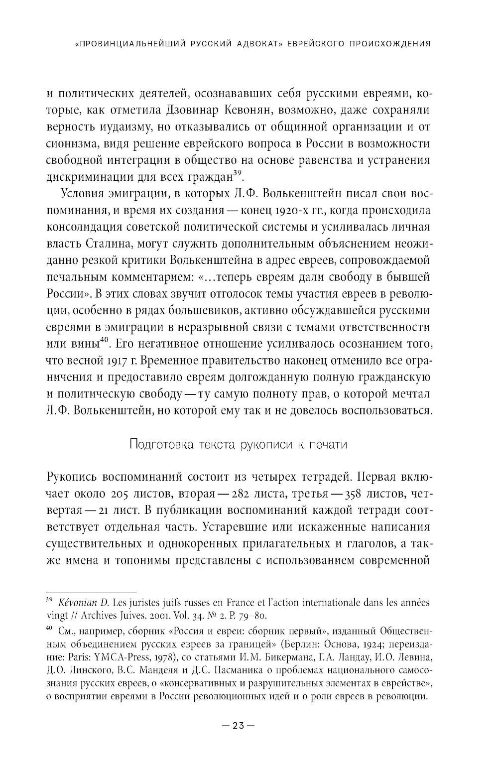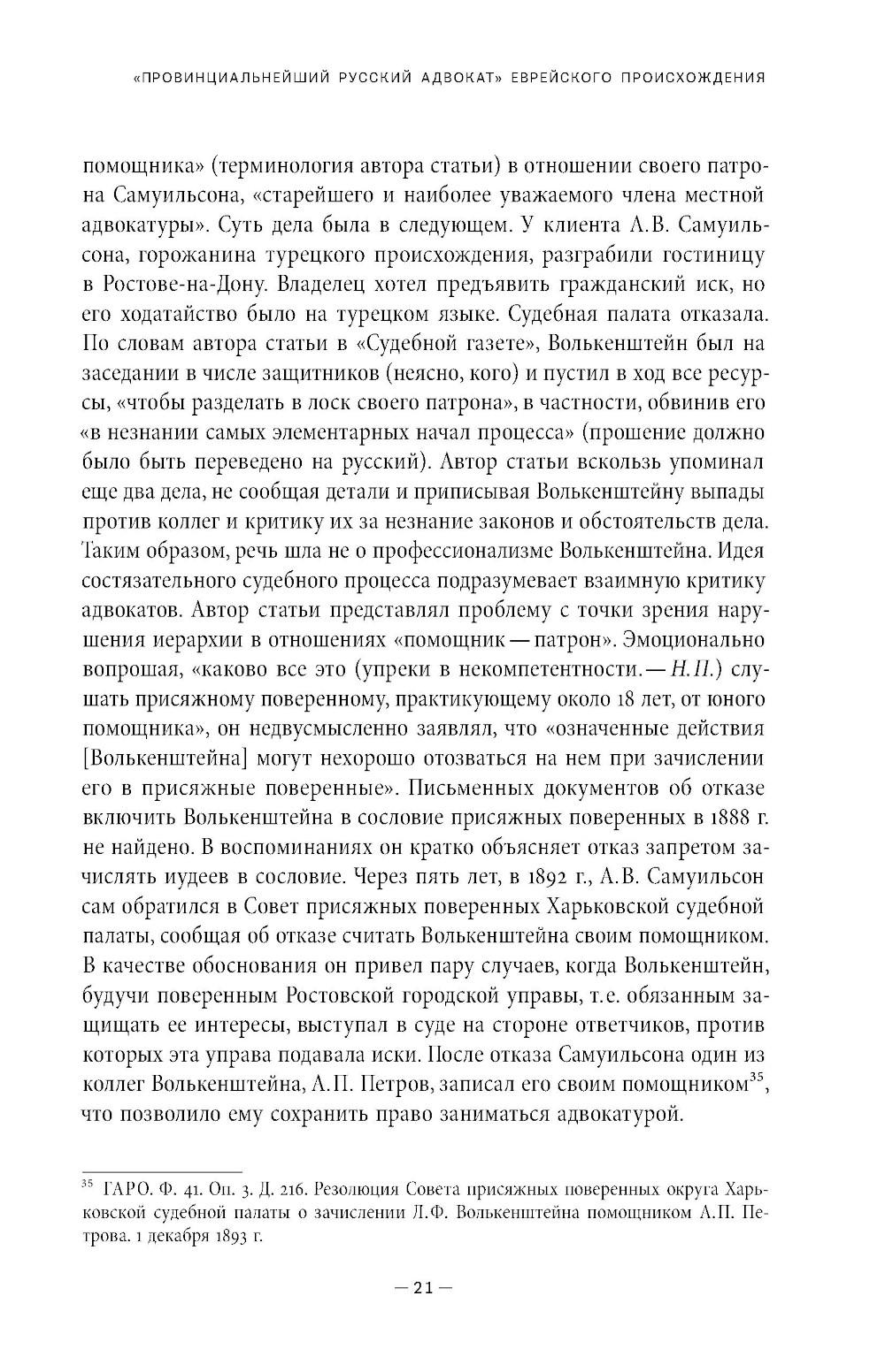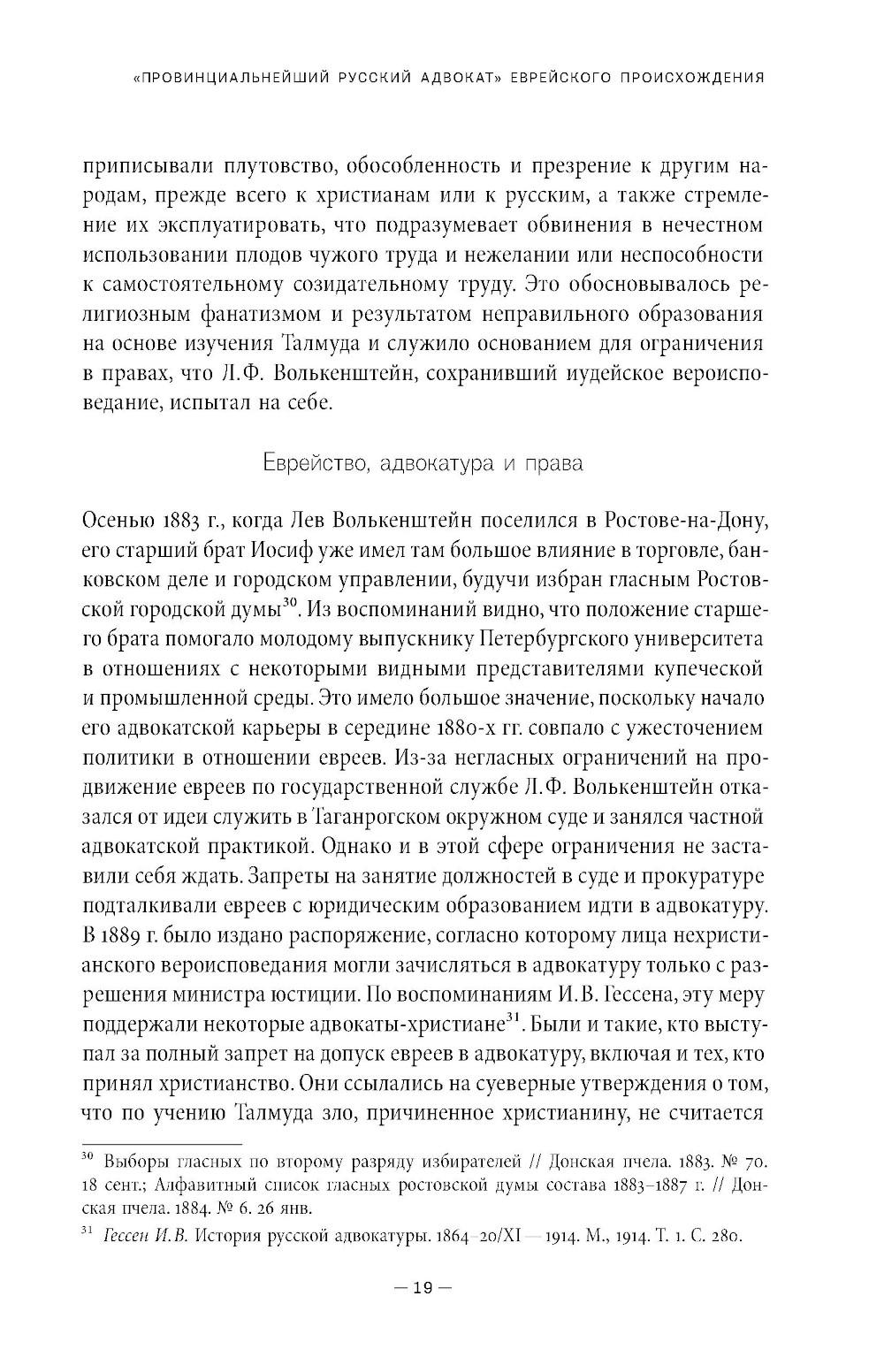 Лев Филиппович Волькенштейн (1857-1935) - ростовский адвокат в конце XIX - начале XX вв., получивший образование сначала в Таганрогской гимназии (где учился вместе с А. П. Чеховым), а затем на юридическом факультете Петербургского университета. Иронично определяя себя как «провинциала», мемуарист подробно описывает быт и судебную практику в Ростове того времени, уделяя особое внимание колоритным уголовным и гражданским делам, которые он вел. Важное место в его воспоминаниях занимает проблема еврейской идентичности. Мемуары повествуют о событиях революции 1917 года и Гражданской войны, а также о пребывании автора в Кисловодске в 1918 году, когда город занимали то красные, то белые. В 1921 году Л. Ф. Волькенштейн бежал из Советской России, его воспоминания кратко описывают опыт жизни в эмиграции. В приложении публикуются воспоминания Л. Ф. Волькенштейна об А. П. Чехове и его письма, адресованные писателю.