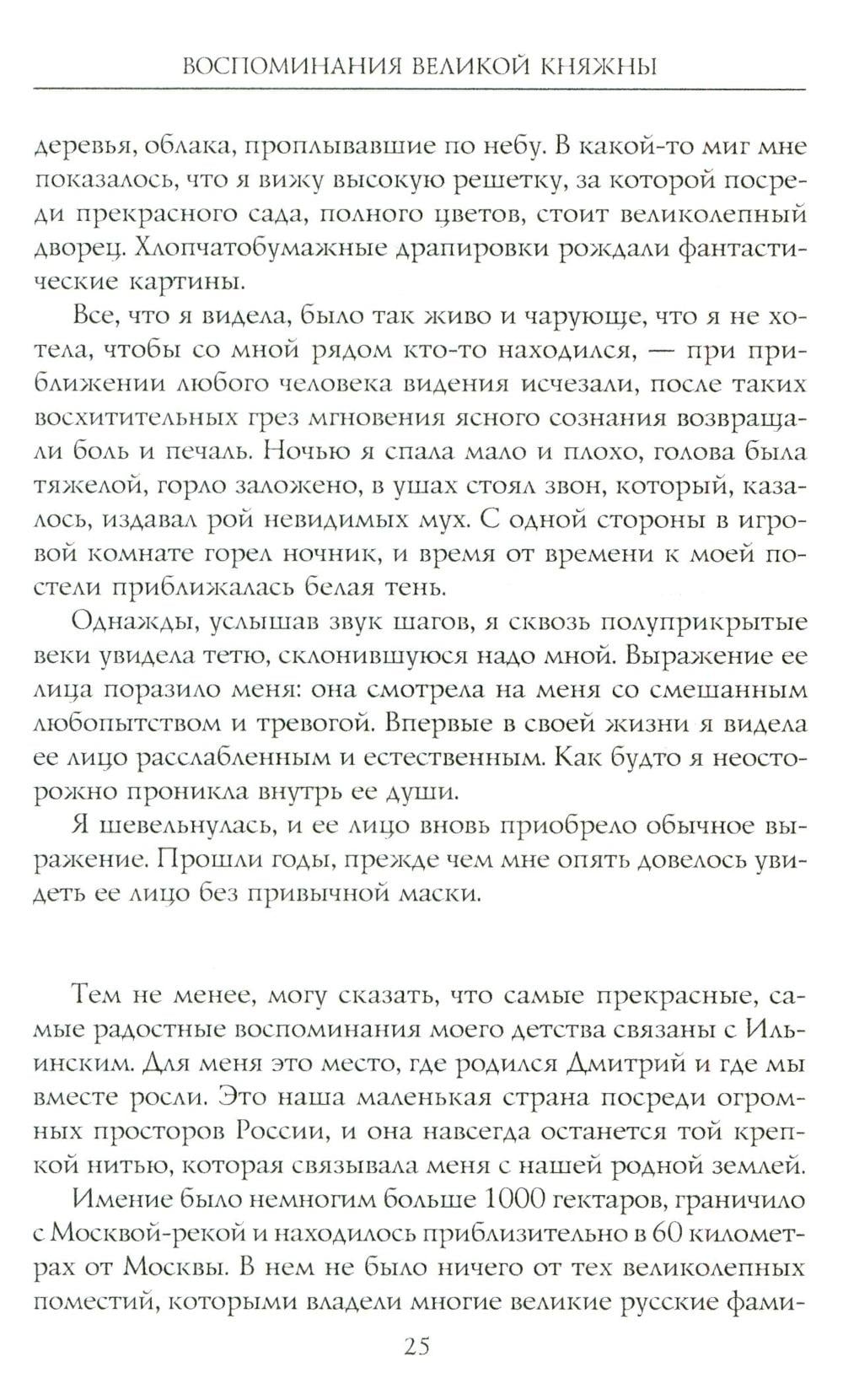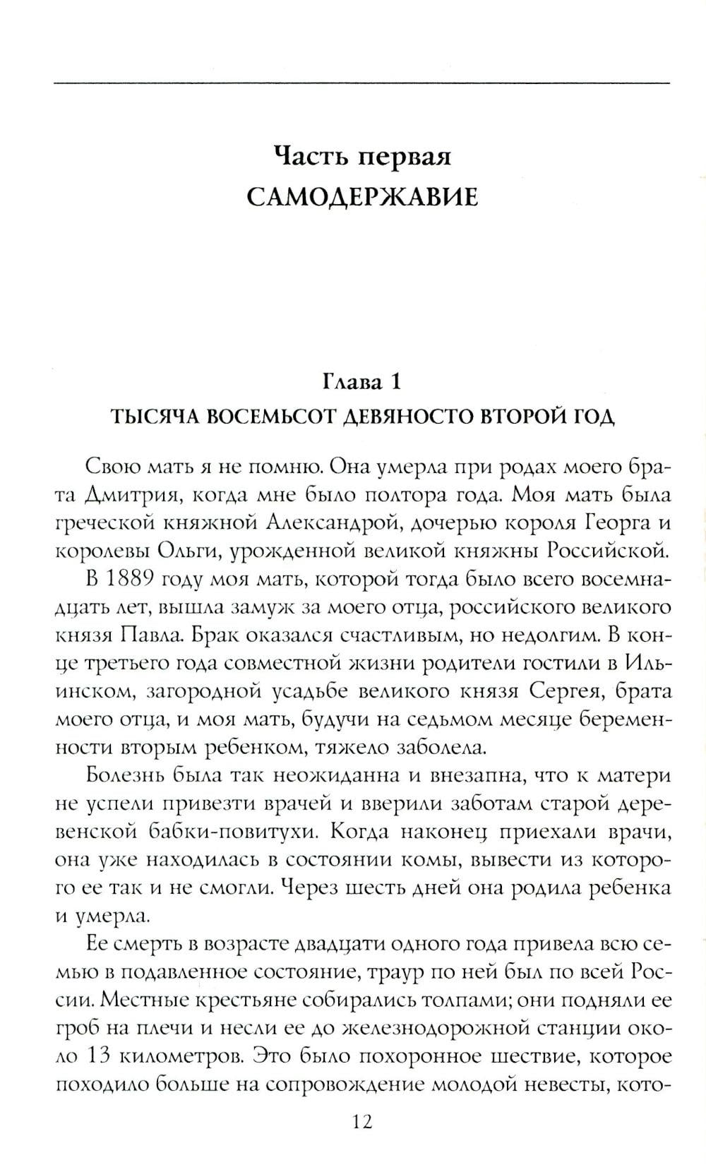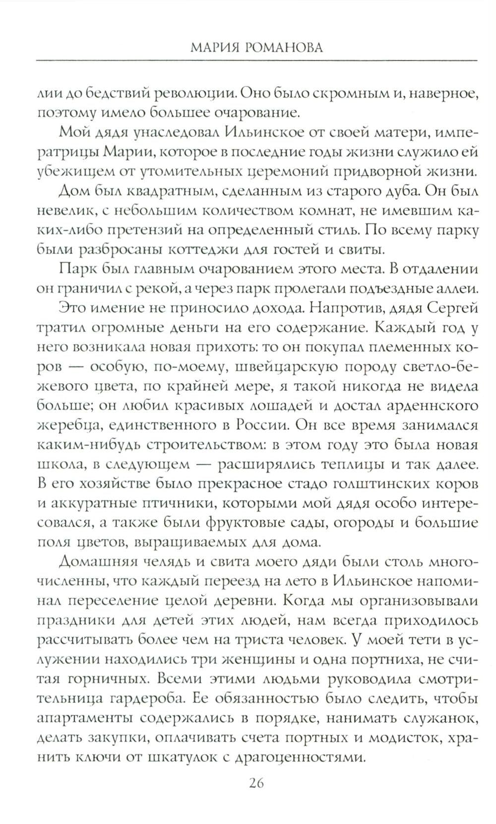 Великая княгиня Мария Павловна Романова, внучка Александра II и дочь младшего брата Александра III - великого князя Павла Александровича, рассказывает о детстве в Ильинском у дяди, великого князя Сергея, церемонном воспитании, которое она получала, своем недолгом замужестве и жизни при шведском дворе, о возвращении в Россию, интригах Распутина, последних драматических днях династии Романовых и бегстве из России.| Издательство | Центрполиграф |