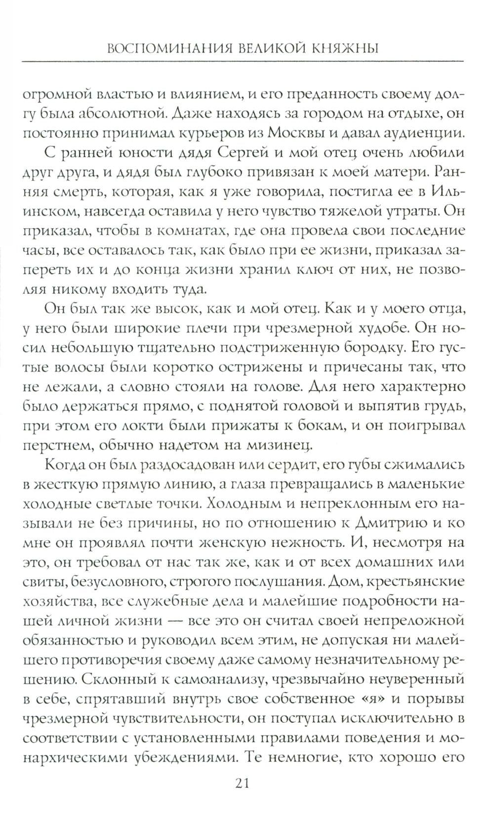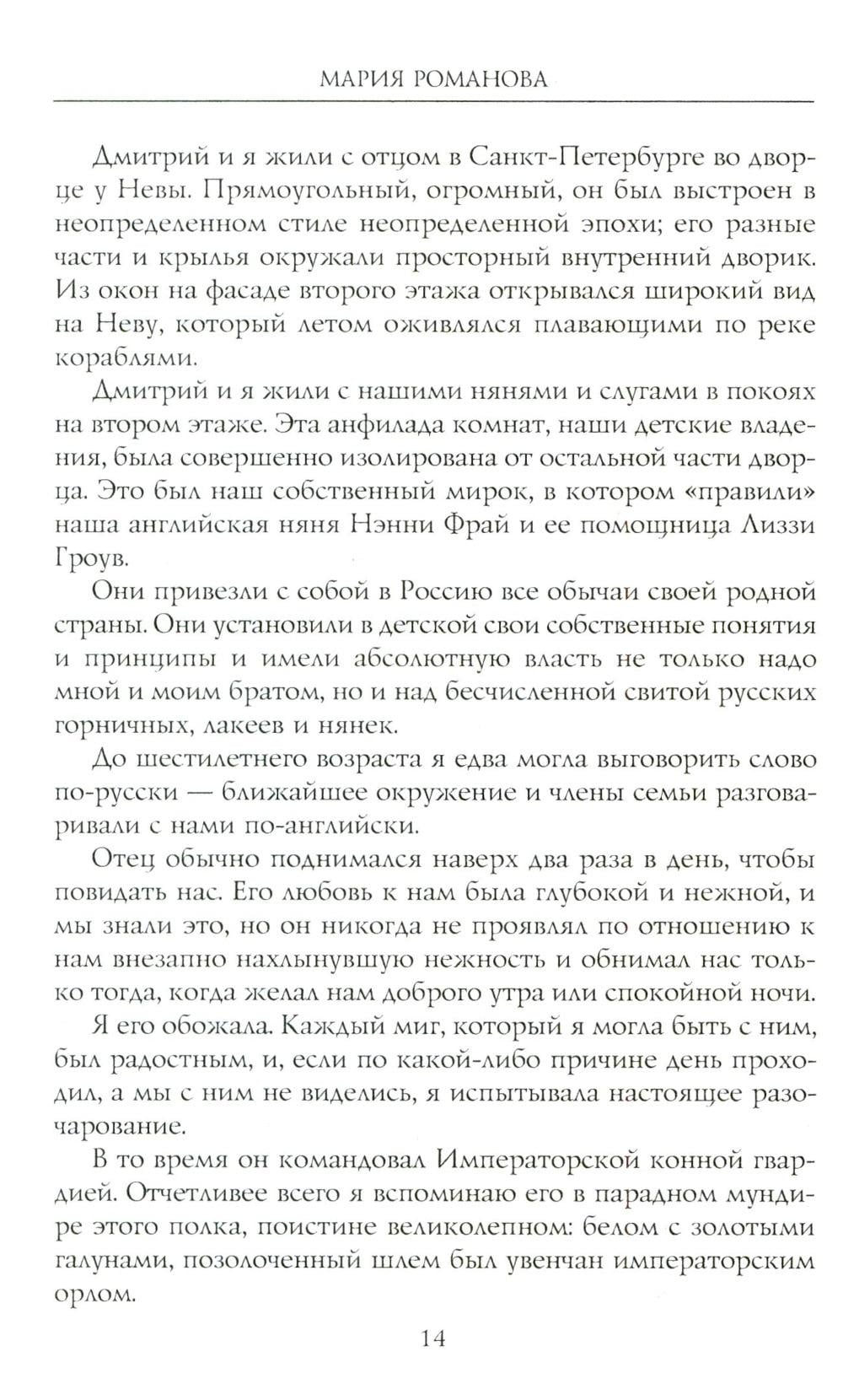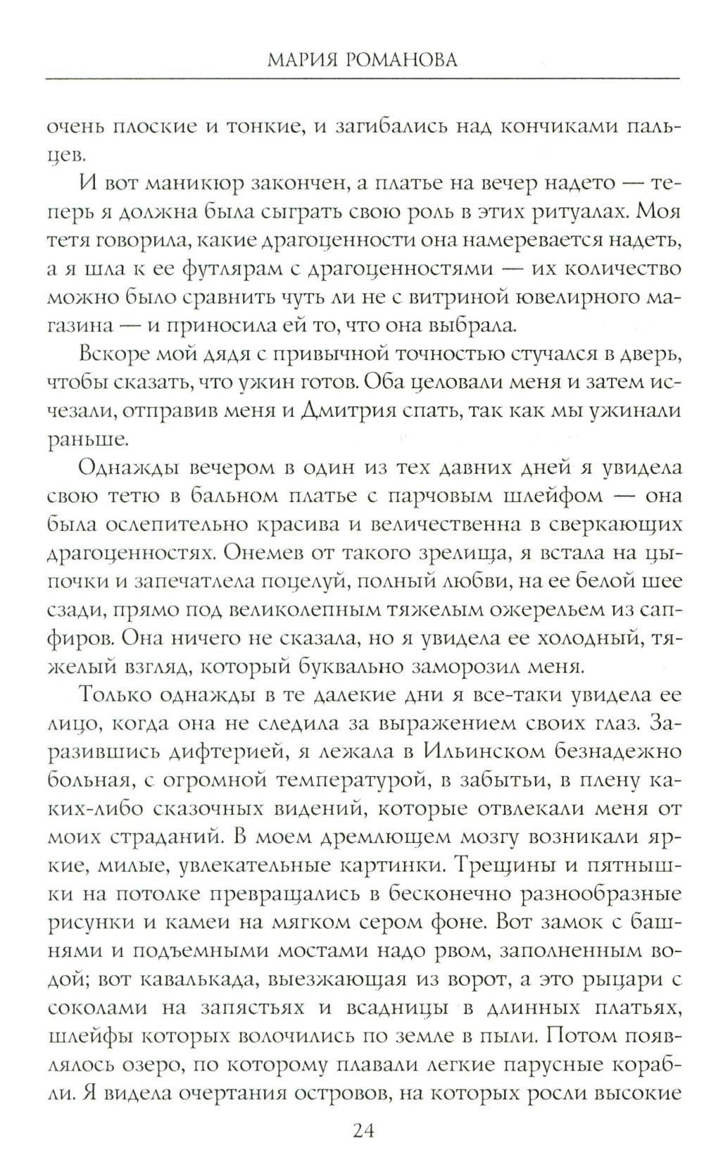 Великая княгиня Мария Павловна Романова, внучка Александра II и дочь младшего брата Александра III - великого князя Павла Александровича, рассказывает о детстве в Ильинском у дяди, великого князя Сергея, церемонном воспитании, которое она получала, своем недолгом замужестве и жизни при шведском дворе, о возвращении в Россию, интригах Распутина, последних драматических днях династии Романовых и бегстве из России.| Издательство | Центрполиграф |