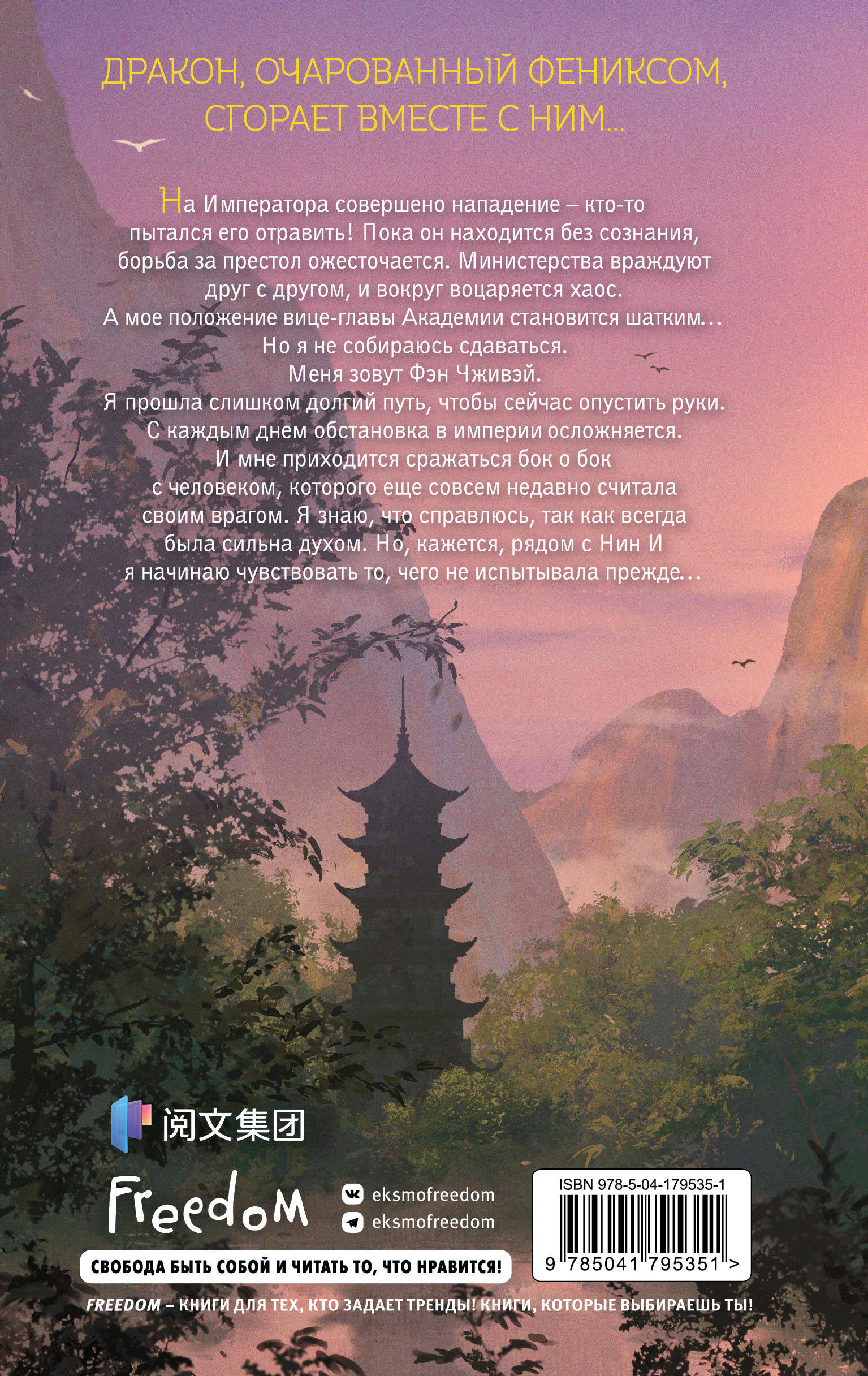 Долгожданное продолжение знаменитого китайского романа писательницы Тянься Гуйюань в стильном оформление с запечатанными форзацами, закрашенным обрезом и цветными вклейками с персонажами! Фэн Чживэй оказывается в самом центре ожесточенной борьбы за трон. Хочет она того или нет ей придется объединить силы с шестым наследным принцем Нин И. Сможет ли она исполнить свой долг или чувства возьмут верх? На Императора совершено нападение - кто-то пытался его отравить! Пока он находится без сознания, борьба за престол ожесточается. Министерства враждуют друг с другом, и вокруг воцаряется хаос. А мое положение вице-главы Академии становится шатким… Но я не собираюсь сдаваться. Меня зовут Фэн Чживэй. Я прошла слишком долгий путь, чтобы сейчас опустить руки. С каждым днем обстановка в империи усложняется. И мне приходится сражаться бок о бок рядом с человеком, которого еще совсем недавно считала своим врагом. Я знаю, что справлюсь, так как всегда была сильна духом. Но, кажется, рядом с Нин И я начинаю чувствовать то, чего не испытывала прежде… Атмосфера Древнего Китая, дворцовые интриги и невероятно нежная, романтичная и чувственная любовная линия. Книга, которую не только приятно читать, но и не стыдно подарить другу. Маст-рид для истинных ценителей «Магистра дьявольского культа» и «Благословения небожителей».| Издательство | ООО "Издательство "Эксмо" |