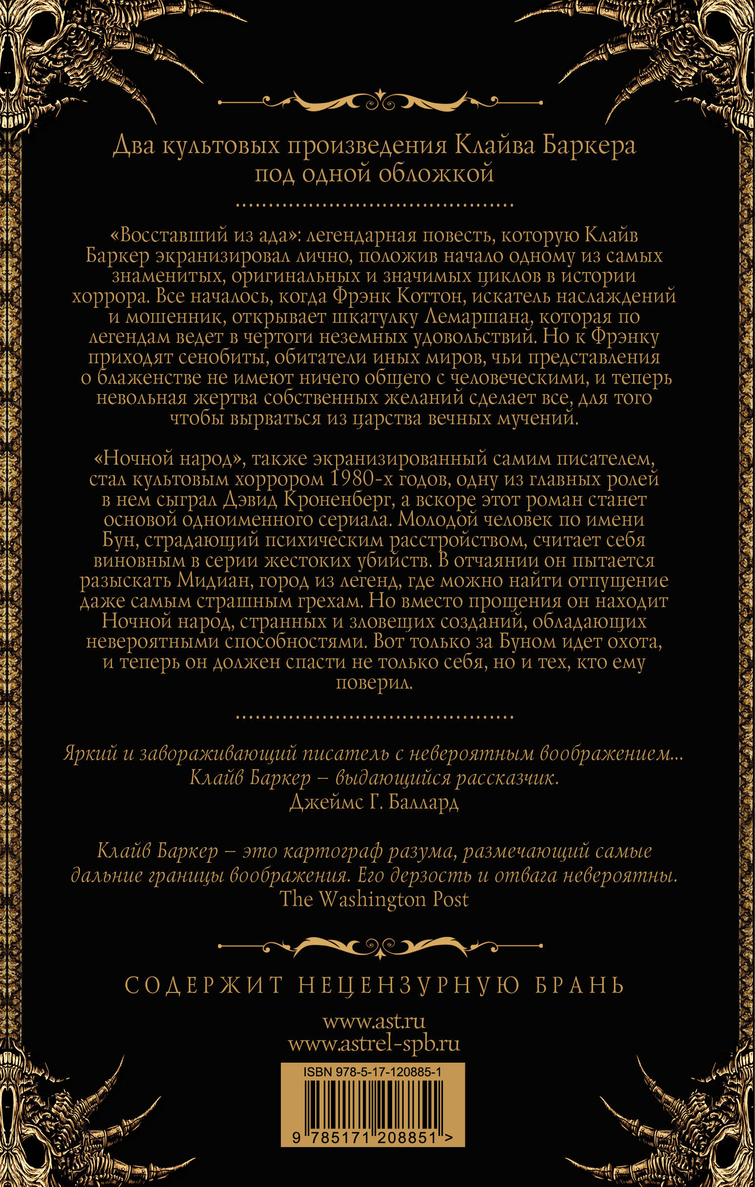 Для всех поклонников Стивена Кинга, Джо Хилла и Адама Нэвилла. От автора культового цикла «Книги крови». Два культовых произведения в жанре ужасов под одной обложкой - и в новых переводах.| Издательство | АСТ |