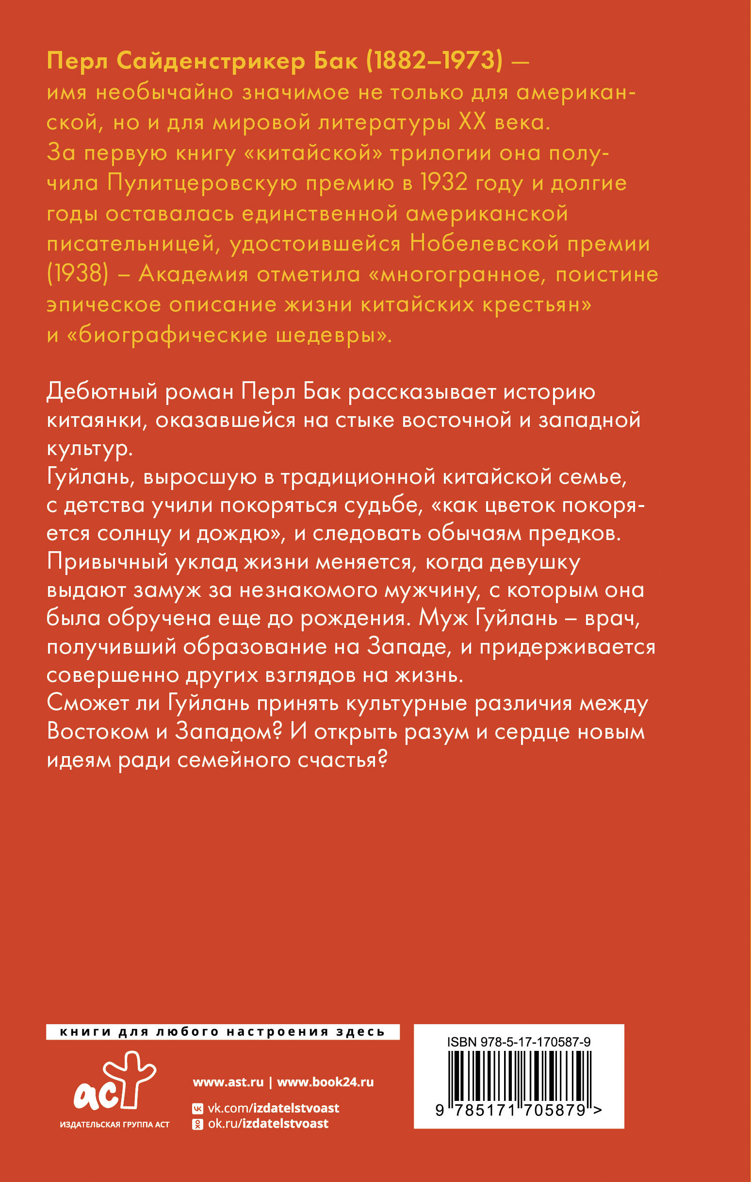 Дебютный роман Перл Бак рассказывает историю китаянки, оказавшейся на стыке восточной и западной культур. Гуйлань, выросшую в традиционной китайской семье, с детства учили покоряться судьбе, "как цветок покоряется солнцу и дождю" и следовать обычаям предков. Привычный уклад жизни меняется, когда девушку выдают замуж за незнакомого мужчину, с которым она была обручена еще до рождения. Муж Гуйлань - врач, получивший образование на Западе, и придерживается совершенно других взглядов на жизнь. Сможет ли Гуйлань принять культурные различия между Востоком и Западом? И открыть разум и сердце новым идеям ради семейного счастья?| Издательство | Издательство "АСТ" |
