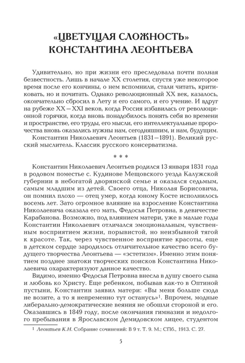 Константин Николаевич Леонтьев (1831-1891) - крупный русский консервативный публицист-государственник, выступавший за более тесные культурные связи между Россией и Востоком и против того, что он считал катастрофическим эгалитаризмом, утилитарным влияний Запада. Леонтьев видел, что западная цивилизация находится в глубоком кризисе и русскому обществу незачем перенимать ее либерально-демократические институты. Он считал, что государственная и общественная жизнь в Российской империи должна базироваться на «византизме» - твердой единодержавной власти, строгой церковности и жестком сословно-иерархическом делении общества. Публикуемый сборник избранных работ, собранный Леонтьевым и впервые изданный в Москве в 1885-1886 годах, по-своему актуален и в наши дни. Настоящее издание заключает статья «Разочарованный славянофил» видного религиозного философа Сергея Николаевича Трубецкого (1861-1905), осмысляющая динамику и некоторые парадоксальные противоречия К.Н. Леонтьева.| Издательство | Академический проект |