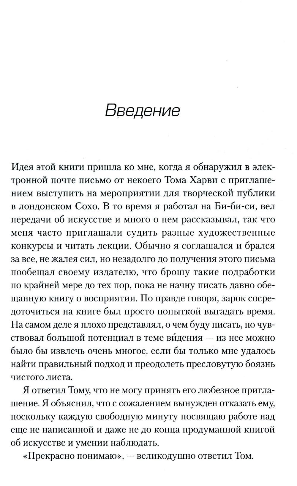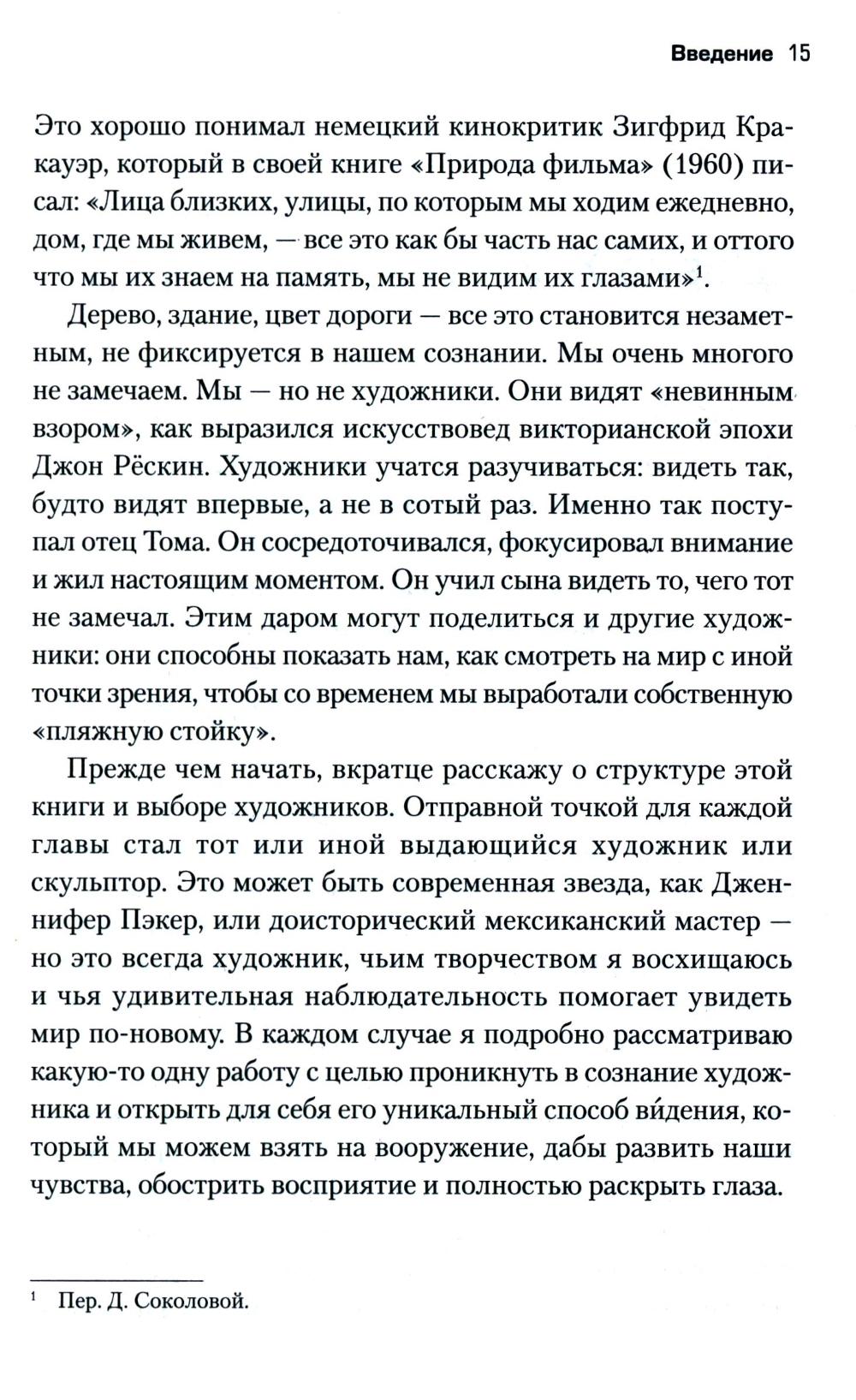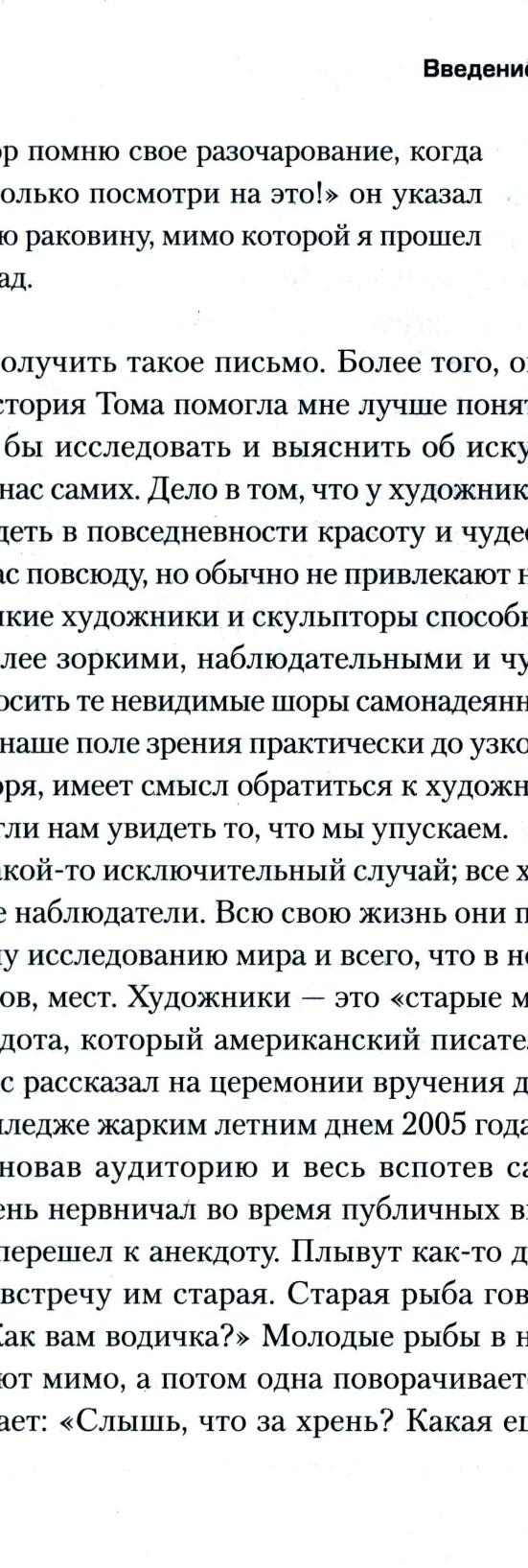 НЕЗАКОННОЕ ПОТРЕБЛЕНИЕ НАРКОТИЧЕСКИХ СРЕДСТВ, ПСИХОТРОПНЫХ ВЕЩЕСТВ, ИХ АНАЛОГОВ ПРИЧИНЯЕТ ВРЕД ЗДОРОВЬЮ, ИХ НЕЗАКОННЫЙ ОБОРОТ ЗАПРЕЩЁН И ВЛЕЧЕТ УСТАНОВЛЕННУЮ ЗАКОНОДАТЕЛЬСТВОМ ОТВЕТСТВЕННОСТЬ. Большинство из нас живет как на автопилоте, не замечая многих составляющих неповторимого богатства окружающего мира. Так не должно быть. То, чего мы привычно не замечаем, видят художники. Потому что, в отличие от нас, обращают внимание, всматриваются. В этой книге признанный авторитет в мире искусства Уилл Гомперц, автор мировых бестселлеров «Думать как художник» и «Непонятное искусство. От Моне до Бэнкси», рассказывает о творчестве ряда выдающихся старых мастеров и современных звезд и показывает, как смотреть на мир, чтобы упускать как можно меньше.