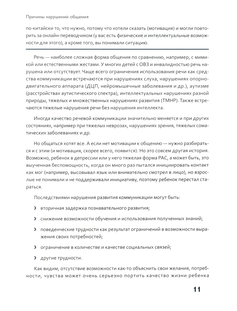 Настоящее издание в простой и наглядной форме представляет основные принципы и инструменты обучения коммуникации детей с нарушениями развития. В книге описано понятие общения как жизненно необходимой всем людям социальной функции, изложены стратегии обучения общению с подробным описанием алгоритма введения АДК, даны диагностические инструменты для определения возможностей детей. Заключительные главы посвящены специфике обучения АДК в социальных учреждениях и вопросам взаимодействия специалистов с родителями. Издание адресовано специалистам учреждений социальной защиты, работающим с детьми и подростками с нарушениями развития, специалистам образовательных учреждений, студентам профильных вузов и родителям.| Издательство | Теревинф |