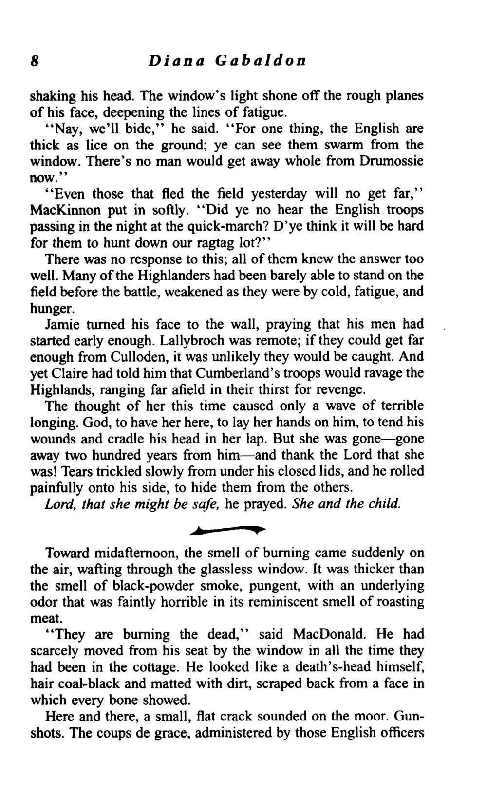 In this rich, vibrant tale, Diana Gabaldon continues the story of Claire Randall and Jamie Fraser that began with the now-classic novel Outlander and continued in Dragonfly in Amber. Sweeping us from the battlefields of eighteenth-century Scotland to the West Indies, Diana Gabaldon weaves magic once again in an exhilarating and utterly unforgettable novel. He was dead. However, his nose throbbed painfully, which he thought odd in the circumstances. Jamie Fraser is, alas, not dead-but he is in hell. Waking among the fallen on Culloden Field, he is concerned neither for his men nor his wounds but for his wife and their unborn child. Lord, he prayed passionately, that she may be safe. She and the child. It's a prayer he'll utter many times over the next twenty years, never knowing but always hoping that Claire made it through the standing stones, back to the safety of her own time. Safe she is, but believing Jamie gone forever, she's obliged to live without a heart, her only comfort their daughter, Brianna. But now, their daughter grown, she discovers that Jamie survived, and a fateful decision lies before her: Stay with her beloved daughter, or go back to search Scotland's dangerous past for the man who was her heart and soul, sustained only by the hope that they will still know each other if she finds him.| Издательство | Arrow Books |