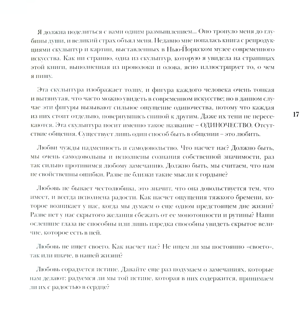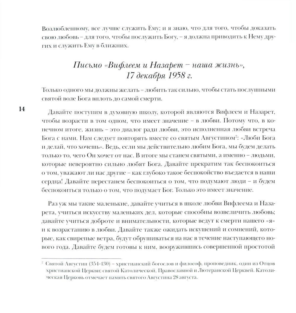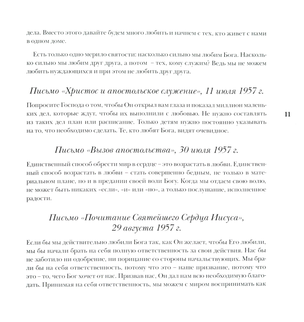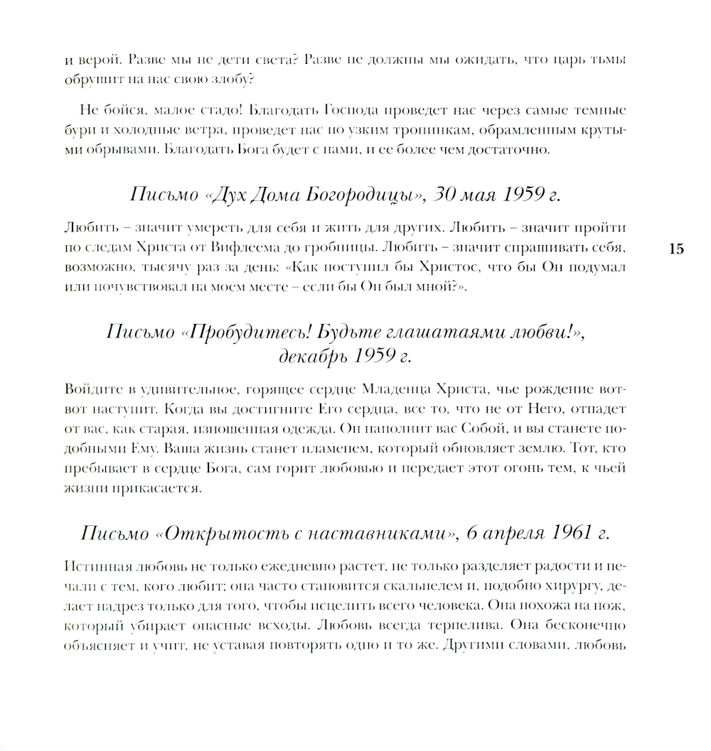 Настоящая книга представляет собой собрание фрагментов писем Екатерины де Гук Дохерти, одной из выдающихся личностей XX века, своим духовным детям. Все они касаются тем, актуальных для человека вне зависимости от его возраста и происхождения: любовь, отношения с Богом, отношения с близкими, дружба, страдание, боль, страхи, призвание, мужество, вера… Екатерина дает ясные, прямые, глубокие ответы на самые сложные вопросы, опираясь на свой духовный опыт и любовь к тем, кому адресованы написанные ею строки. Мы надеемся, что каждый читатель сможет найти в словах и советах этой удивительной женщины что-то полезное и для себя.| Издательство | Изд. Францисканцев |