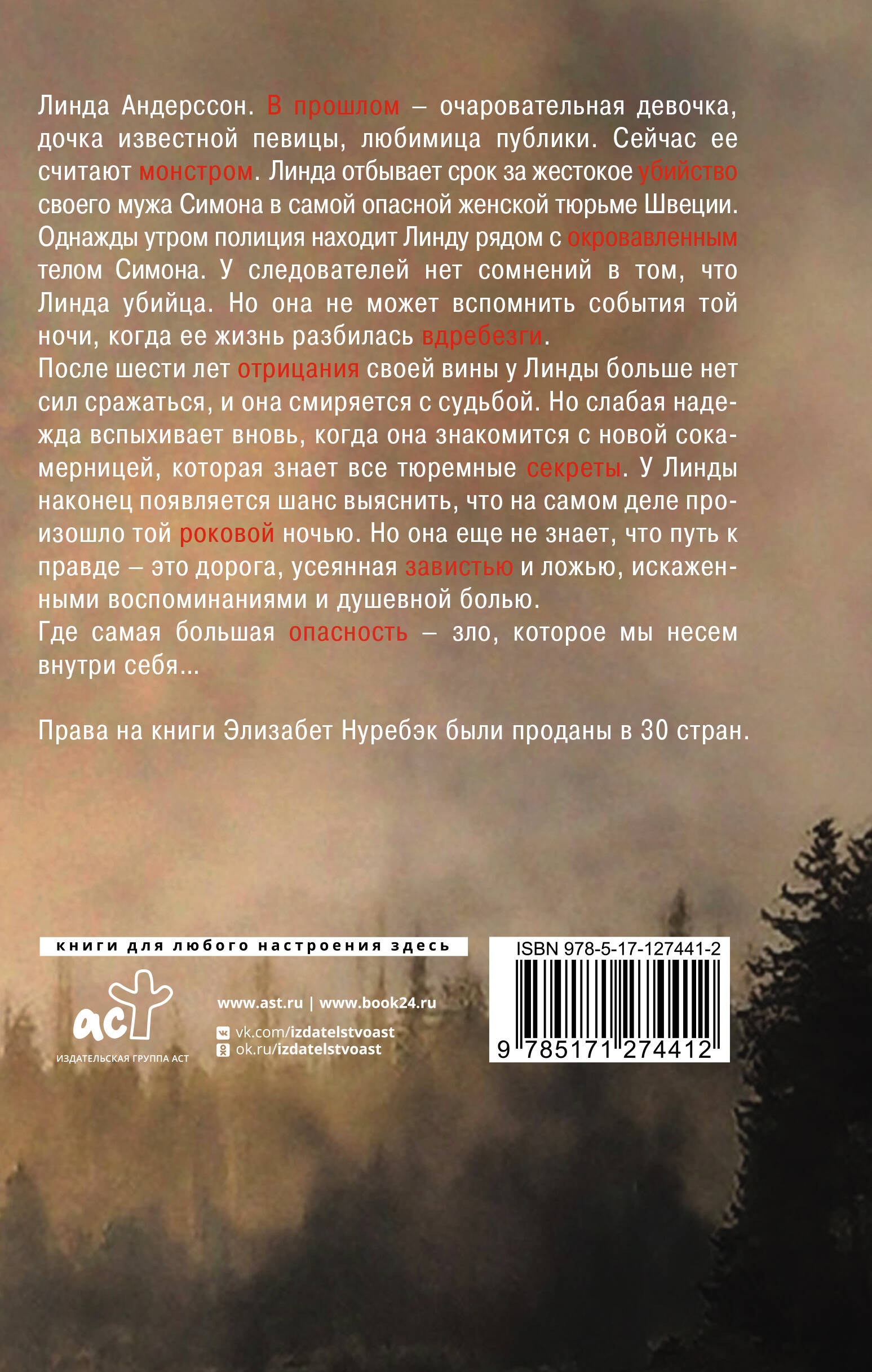Линда Андерссон. В прошлом - очаровательная девочка, дочка известной певицы, любимица публики. Сейчас ее считают монстром. Линда отбывает срок за жестокое убийство своего мужа Симона в самой опасной женской тюрьме Швеции. Однажды утром полиция находит Линду рядом с окровавленным телом Симона. У следователей нет сомнений в том, что Линда убийца. Но она не может вспомнить события той ночи, когда ее жизнь разбилась вдребезги. После шести лет отрицания своей вины у Линды больше нет сил сражаться, и она смиряется с судьбой. Но слабая надежда вспыхивает вновь, когда она знакомится с новой сокамерницей, которая знает все тюремные секреты. У Линды наконец появляется шанс выяснить, что на самом деле произошло той роковой ночью. Но она еще не знает, что путь к правде - это дорога, усеянная завистью и ложью, искаженными воспоминаниями и душевной болью. Где самая большая опасность - зло, которое мы несем внутри себя…| Издательство | ИЗДАТЕЛЬСТВО "АСТ" |
