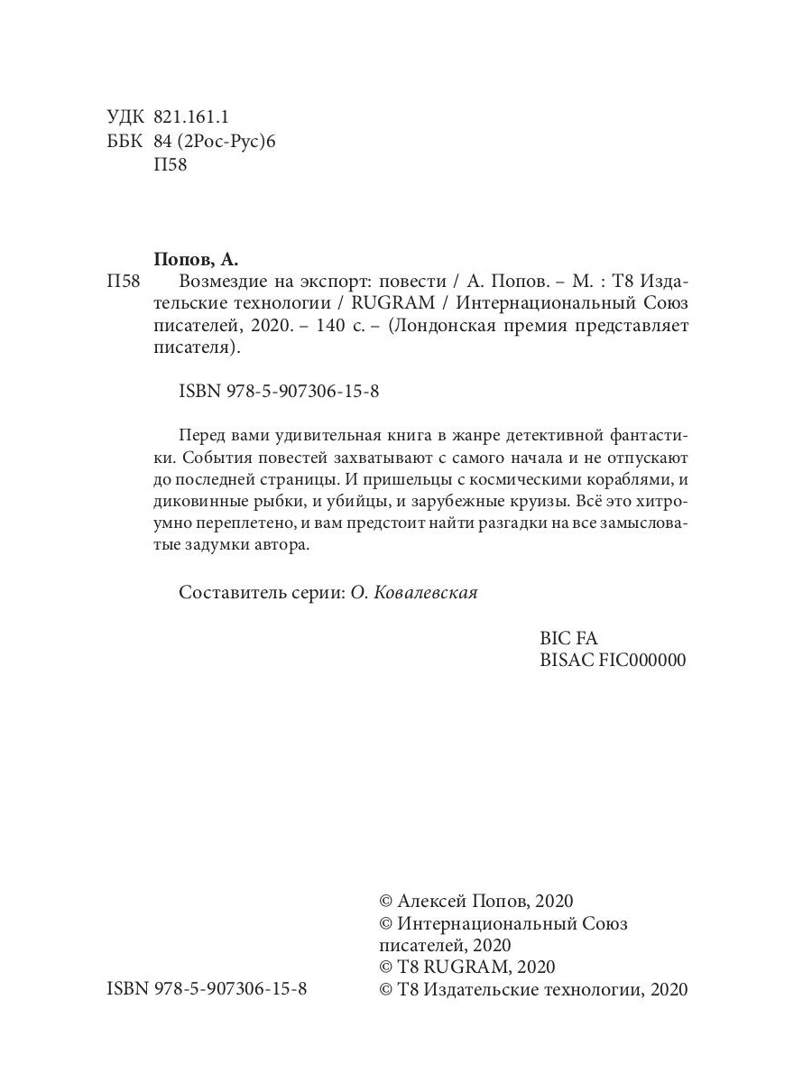 Перед вами удивительная книга в жанре детективной фантастики. События повестей захватывают с самого начала и не отпускают до последней страницы. И пришельцы с космическими кораблями, и диковинные рыбки, и убийцы, и зарубежные круизы. Всё это хитроумно переплетено, и вам предстоит найти разгадки на все замысловатые задумки автора.| Издательство | Т8 RUGRAM |