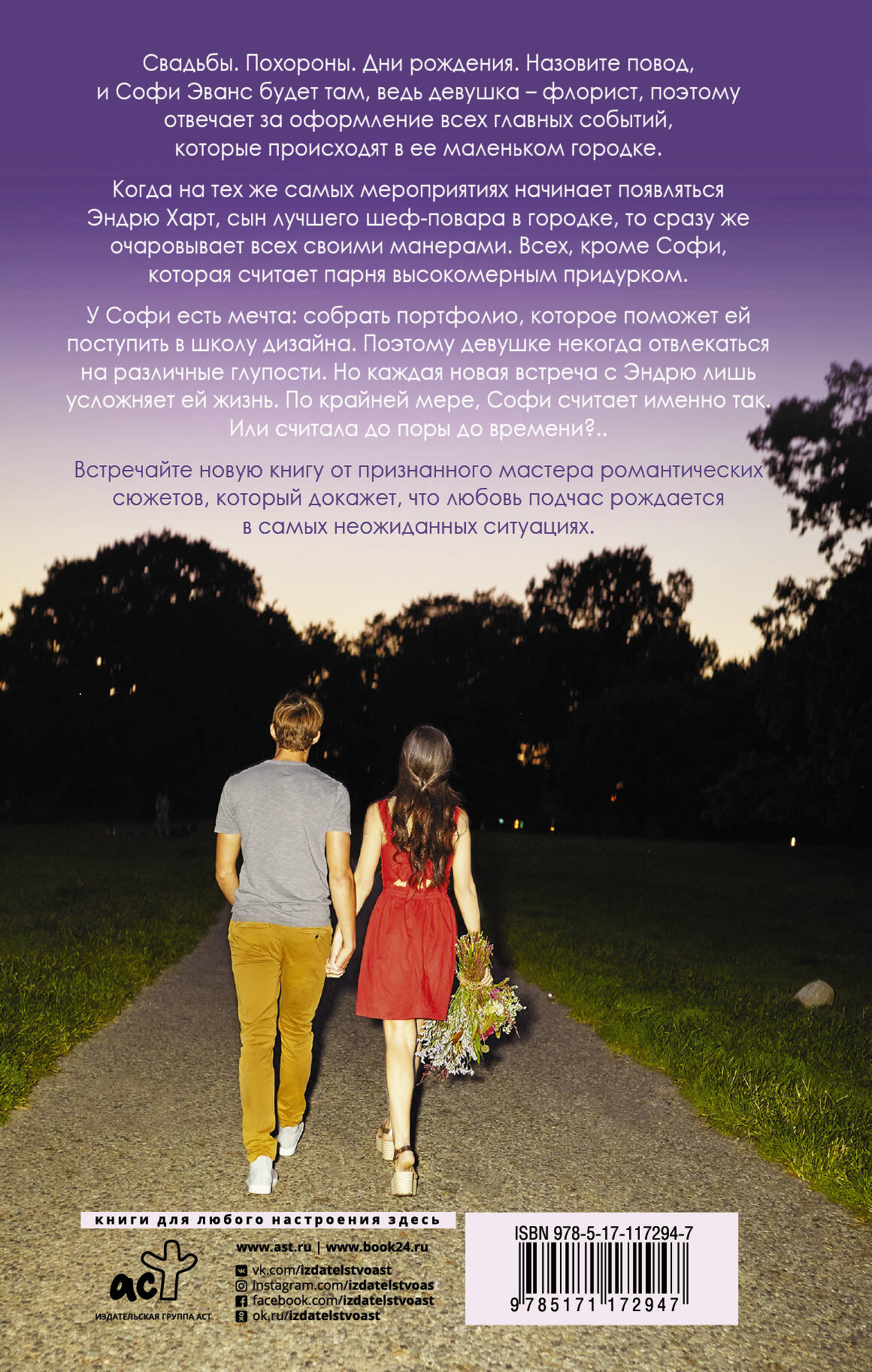 Свадьбы. Похороны. Дни рождения. Назовите повод, и Софи Эванс будет там, ведь девушка - флорист, поэтому отвечает за оформление всех главных событий, которые происходят в ее маленьком городке. Когда на тех же самых мероприятиях начинает появляться Эндрю Харт, сын лучшего шеф-повара в городке, то сразу же очаровывает всех своими манерами. Всех, кроме Софи, которая считает парня высокомерным придурком. При этом у Софи есть мечта: собрать портфолио, которое поможет ей поступить в школу дизайна. Поэтому девушке некогда отвлекаться на различные глупости. Но каждая новая встреча с Эндрю лишь усложняет ей жизнь. По крайней мере, Софи считает именно так. Или считала до поры до времени?..| Издательство | ИЗДАТЕЛЬСТВО "АСТ" |