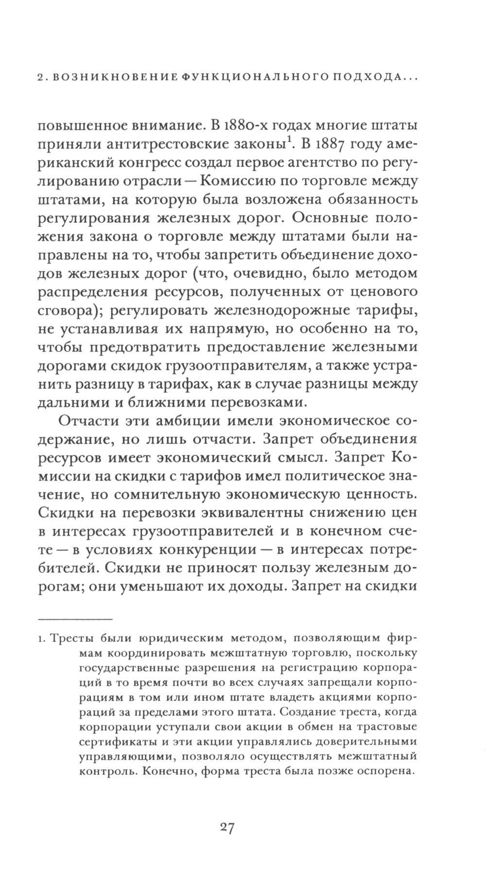 В этой книге предлагается краткая история возникновения и утверждения экономической теории права как области исследований в американских колледжах и юридических школах, объясняется происхождение этой отрасли знания и источники ее роста в ключевой период ее формирования и описываются интеллектуальные корни этой дисциплины и ее связи с пониманием правовой системы как того, что задает направление функционированию экономики. Автор показывает, какое влияние оказали Великая депрессия и расширение полномочий государства на развитие такого подхода к праву. В книге также рассматриваются труды Аарона Директора конца 1950-х годов, внимание в которых сосредоточено на экономическом анализе как на средстве понимания влияния правовой и нормативной системы на распределение ресурсов в обществе. Затем автор обращается к другим интеллектуальным основателям этой дисциплины - Рональду Коузу, Гвидо Калабрези и Ричарду Познеру - и пытается прояснить их вклад. В книге также обсуждаются усилия Роберта Борка и Генри Манна, направленные на расширение влияния экономического анализа права на государственную политику. Книга заканчивается основанием Американской ассоциации права и экономики в 1991 году.| Издательство | Изд. Института Гайдара |